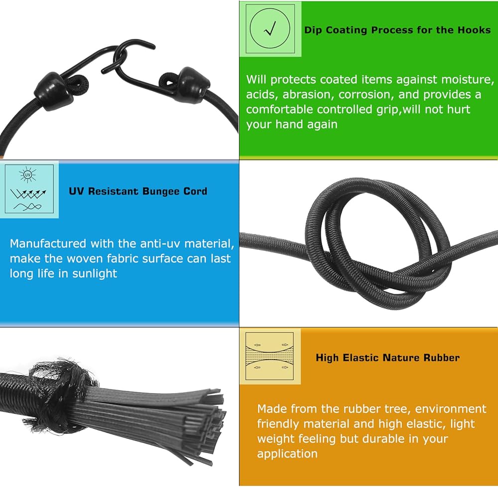 • استخدام على نطاق واسع: شائع الاستخدام لربط الأمتعة على الدراجة والسيارة والقوارب ، تعمل أيضًا كحاجز رف وحامل حصيرة وللحفاظ على أكياس القمامة آمنة