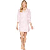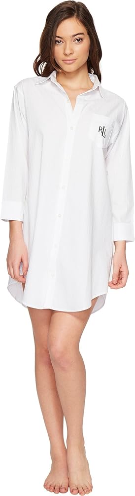 Drift off to dreamland in this soft cotton LAUREN Ralph Lauren Essentials Bingham Knits Sleep Shirt with allover print. Contrast piping provides a refined finish. Notched collar frames the button placket. Patch chest pocket boasts logo embroidery. Three-quarter sleeves. Shirttail hem. 100% cotton. Machine wash cold, tumble dry low.