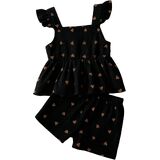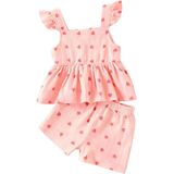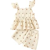 - مجموعة الملابس اللطيفة الفتاة السراويل القصيرة: أكمام نشرة خطاب محطمة طباعة الأعلى. القوس مرنة الخصر سراويل تنفس. لطيف 2 قطع فتاة صغيرة الربيع والصيف.