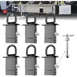 SALUINOKI Stake Pocket D-Ring Heavy Duty with Anti-loss Lock and Gloves, Trailer D-Ring Stake Pocket Tie Downs Breaking Load 16,200lbs Galvanized Black (6 Set)