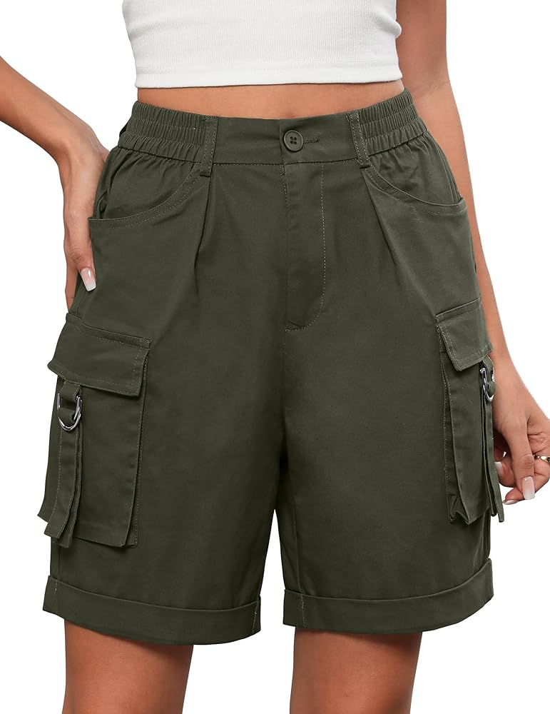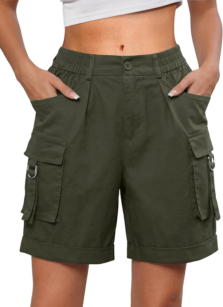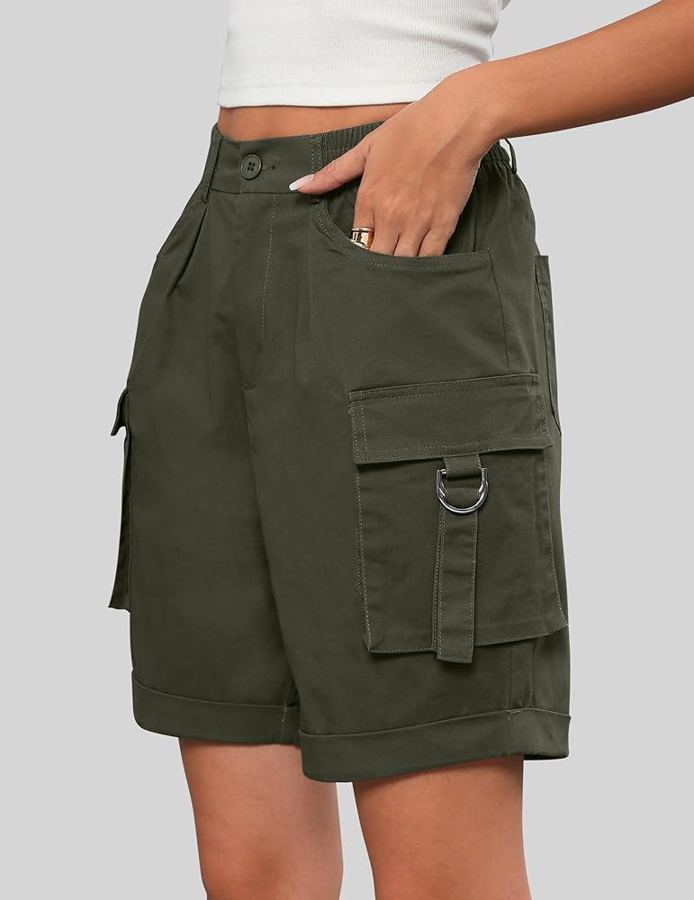 التصميم: شورتات برمودا للنساء ، عالية الخصر ، طول الركبة ، شورتات نسائية 7 بوصات ، شورت مع 6 جيوب حقيقية متعددة الوظائف ، خصر مرن ، شورت الصيف هي الموضة والعارضة