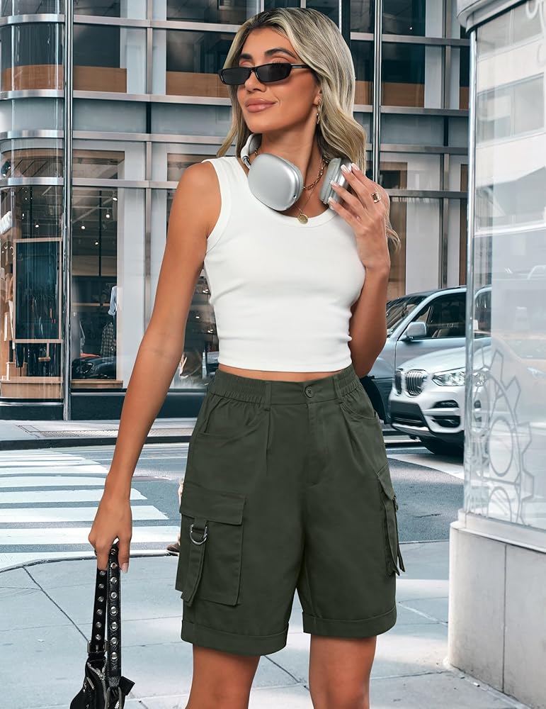 المباراة: 2025 شورتات قطنية غير رسمية مثالية مع قمم الخزانات ، تي شيرت ، قمة المحاصيل ، قمم مشد ، سترات ، قبعات ، متسلسلات وشعلة لإلقاء نظرة على الموضة ، نظرة y2k أو ارتداء العمل الأنيق