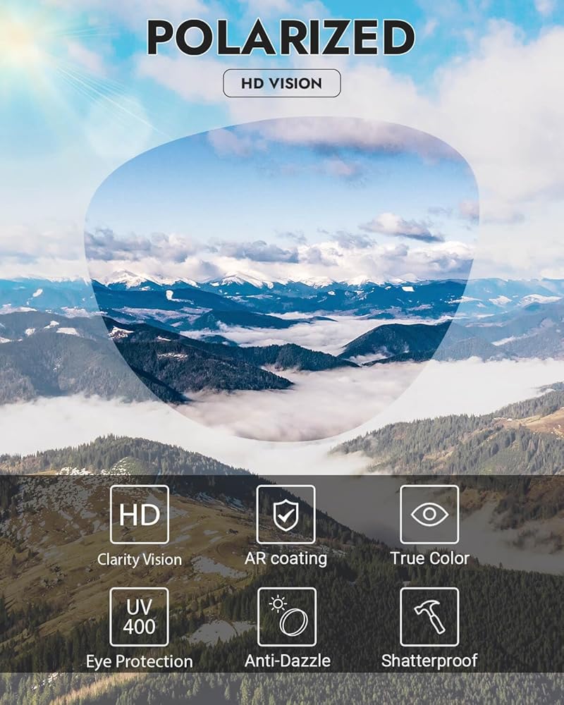 نظام حماية الأشعة فوق البنفسجية المستقطبة | الهيكل الضوئي للطبقة الثلاثية ، بما في ذلك الطبقة المستقطبة (تقليل الوهج 99.2 ٪) ، حاجز UV400 (انسداد 99.9 ٪ UVA/UVB) ، طلاء مضاد للانعكاس (الانعكاس الداخلي <0.5 ٪).