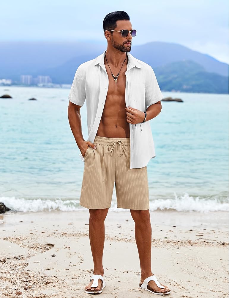 • 【Soft Fabric】Experience the perfect blend of style and comfort with lightweight, textured beach shorts designed for laid-back sophistication