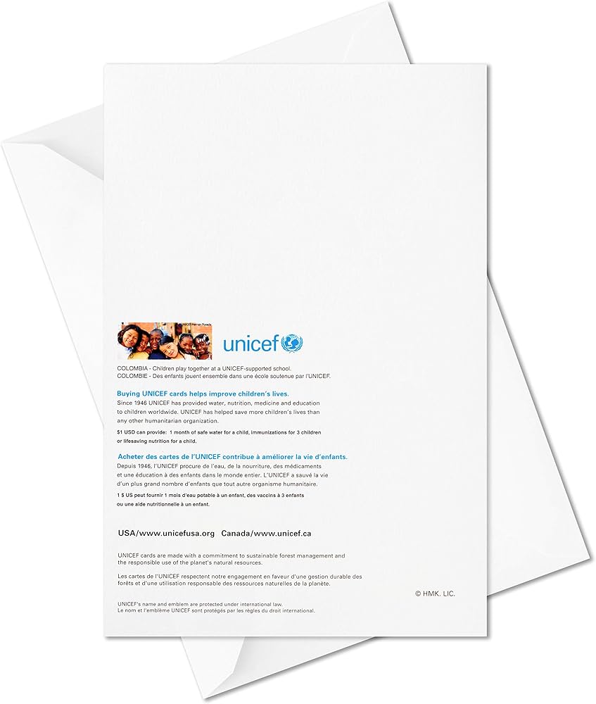 • المؤسسة الدولية لحالات الطوارئ للأطفال في الولايات المتحدة هي وكالة رائدة في مجال الانسانية والتطوير تعمل عالميًا من أجل حقوق كل طفل. سيتم التبرع بجزء من مبيعات بطاقات هولمارك هذه إلى يونيسيف.