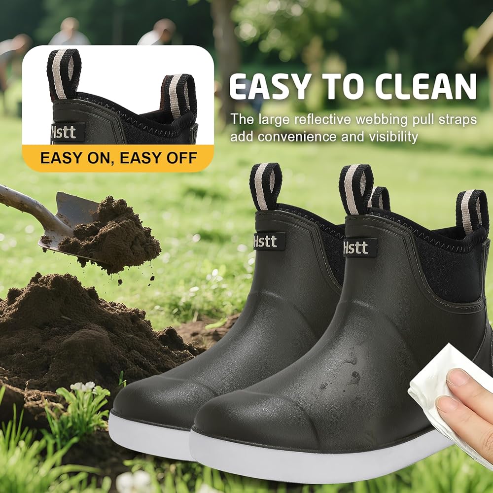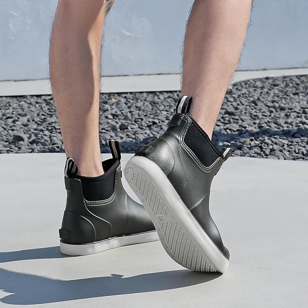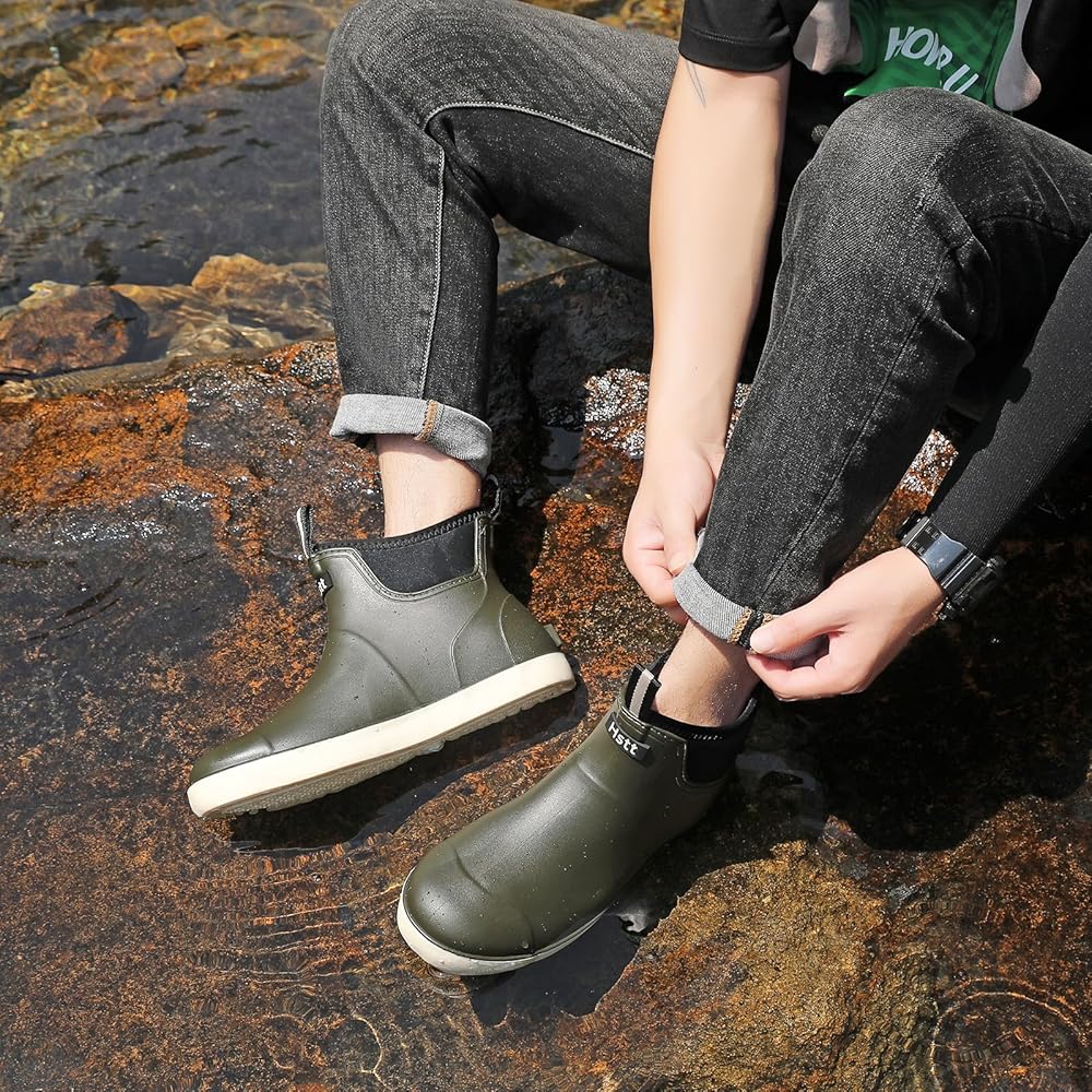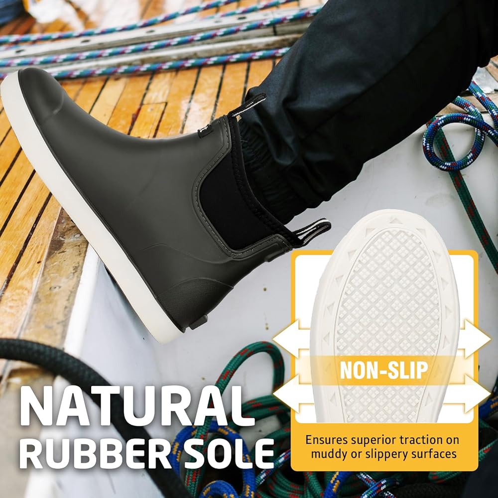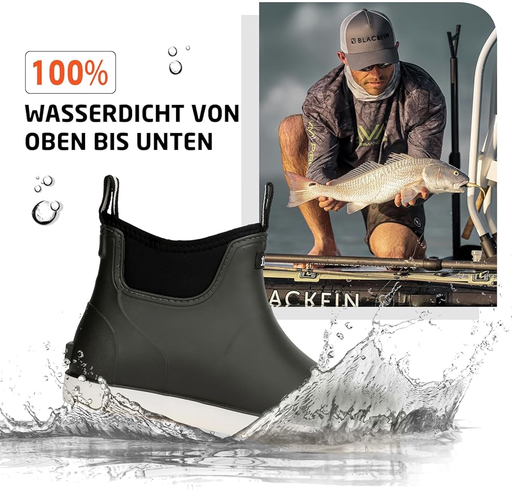 【أحذية مطاطية مقاومة للماء】 مصممة بمطاط عالي الجودة 100 ٪ مقاوم للماء ، فإن أحذية سطح السفينة هذه تبقي قدميك جافة ومريحة في أي حالة مبللة. سواء كنت تصيد الأسماك أو العمل في الهواء الطلق أو التنقل في الأيام الممطرة ، فإن هذه الأحذية توفر حماية موثوقة وطويلة الأمد ضد المياه.