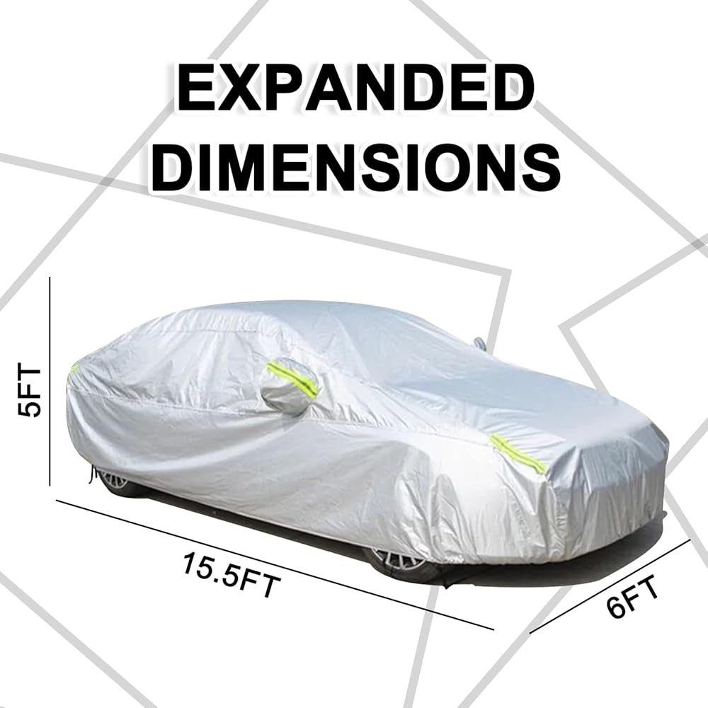 Our premium car cover designed to protect your sedan from harsh weather conditions, dust, scratches, and harmful UV rays, while also helping to keep your car cooler during hot summer days. It is designed to fit most sedans perfectly.