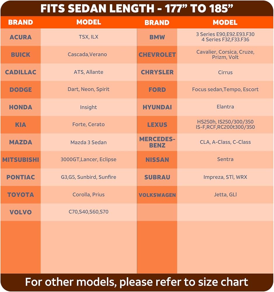 • Universal Fit & Durable: Fits most sedans perfectly and is made from lightweight, water-resistant, and UV-resistant 190T fabric.