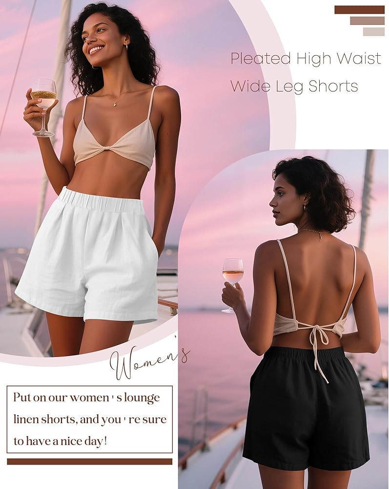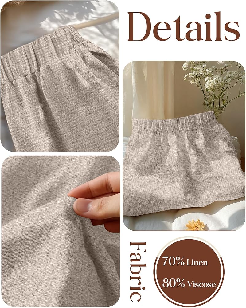 Fabric: women's linen wide leg short are made of 70% Linen, 30% Viscose, soft, lightweight, comfy, stretchy, suitable for the skin; Breathable and sweat wicking, allowing you to stay dry and cool in the hot summer and improve your daily wearing experience