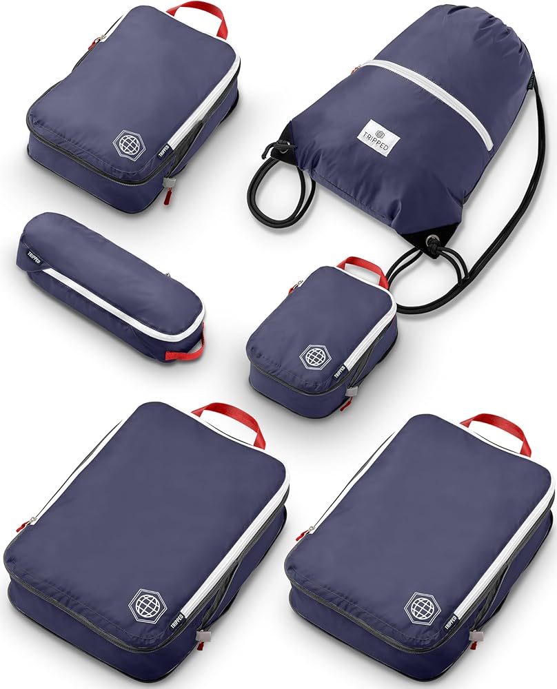 Extra Large Compression Packing Cube 6 Piece Set for Travel and Check Luggage by TRIPPED Travel Gear