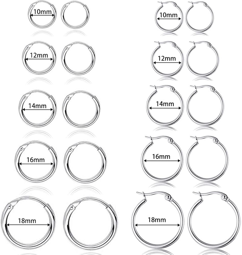 أقراط مختلفة الأطواق: حجم المقياس -18G (1.0 مم) ، قطر أقراط صغير إلى كبير 8 مم ، 10 مم ، 12 مم ، 14 مم ، 16 مم ، 18 ملم. اللون: الذهب 14k ، الفضة ، الأسود ، الذهب الوردي ، قوس قزح ، اختيار مختلف بناءً على احتياجاتك. إذا كان لديك ثقوب متعددة ، فيمكنك ارتداء حجم متعدد في وقت يجلب لك مظهرًا لطيفًا للغاية.