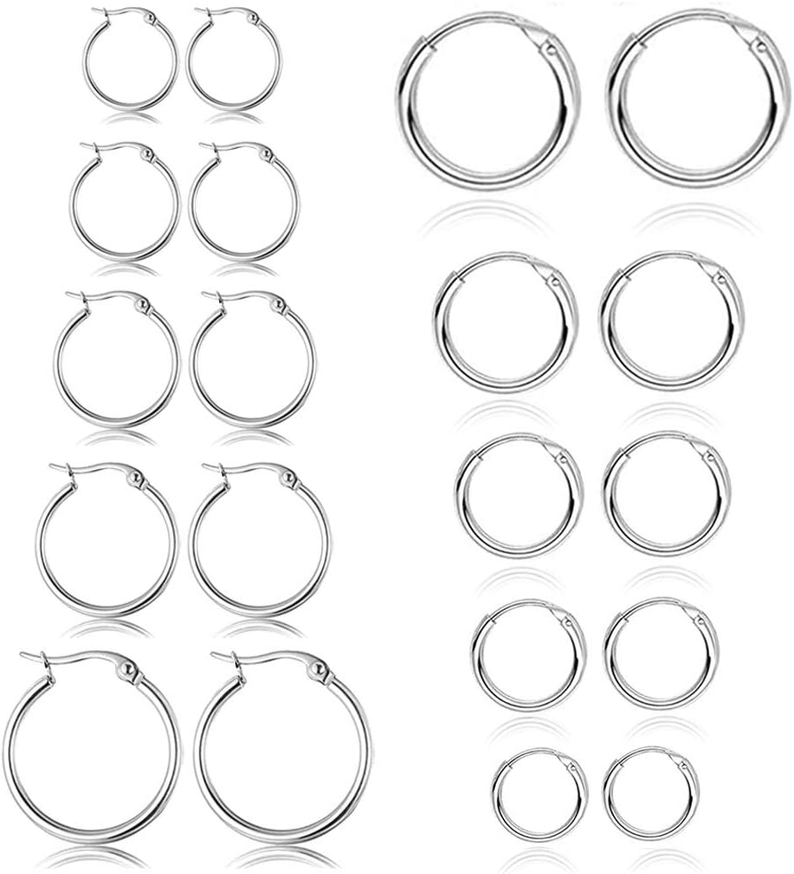 أقراط Hoop التي تم تعيينها للنساء: الكلاسيكية لا تخرج أبدًا من الأناقة ، فإن حلق الطوق البسيط أمر لا بد منه للنساء ، أو يمكن أن ترتدي بمفردهما أو المطابقة مع الأقراط الأخرى لإلقاء نظرة أنيقة.