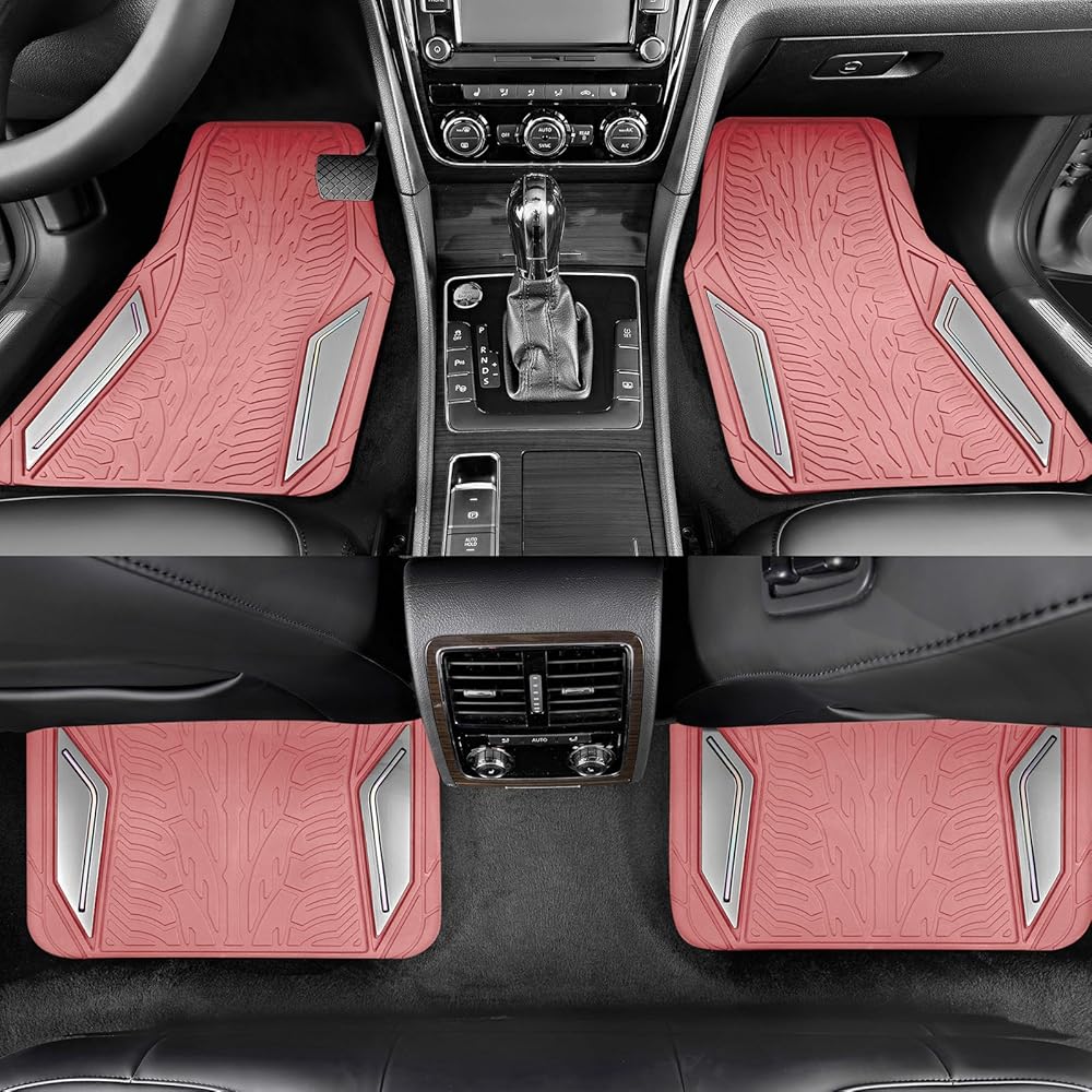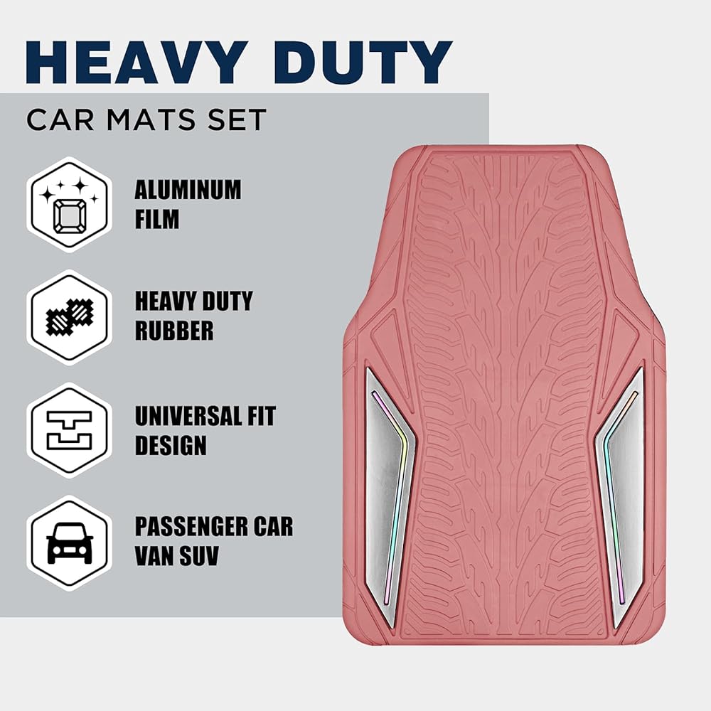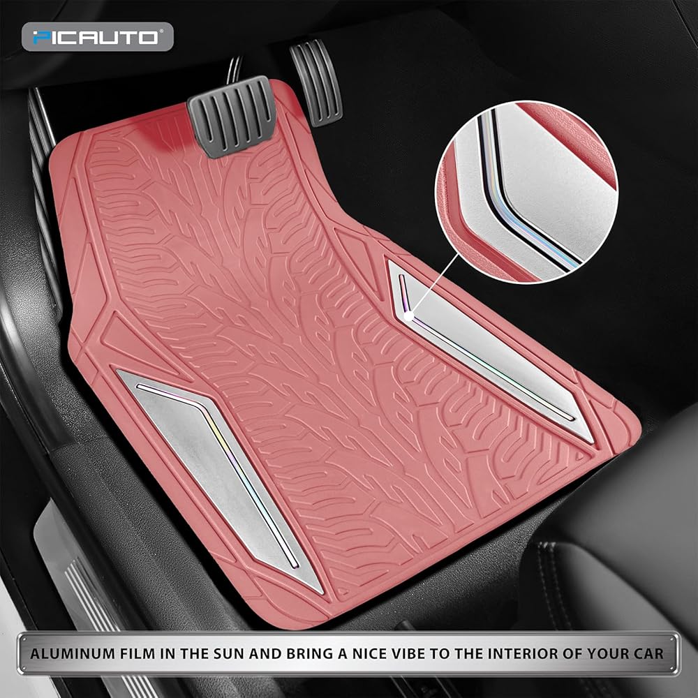 سجادات أرضية مطاطية وردية من PIC AUTO، طبقة ألومنيوم فضية مع سجادات أرضية أنابيب ملونة للسيارات، سجادات سيارة مع ظهر مانع للانزلاق، مناسبة لجميع الأحوال الجوية، بطانة مناسبة للسيارات وسيارات الدفع الرباعي والشاحنات والمركبات