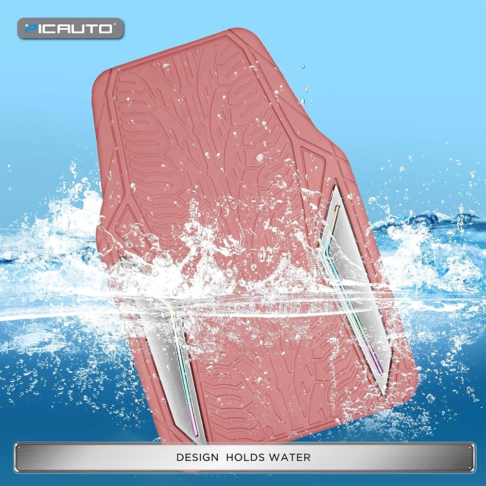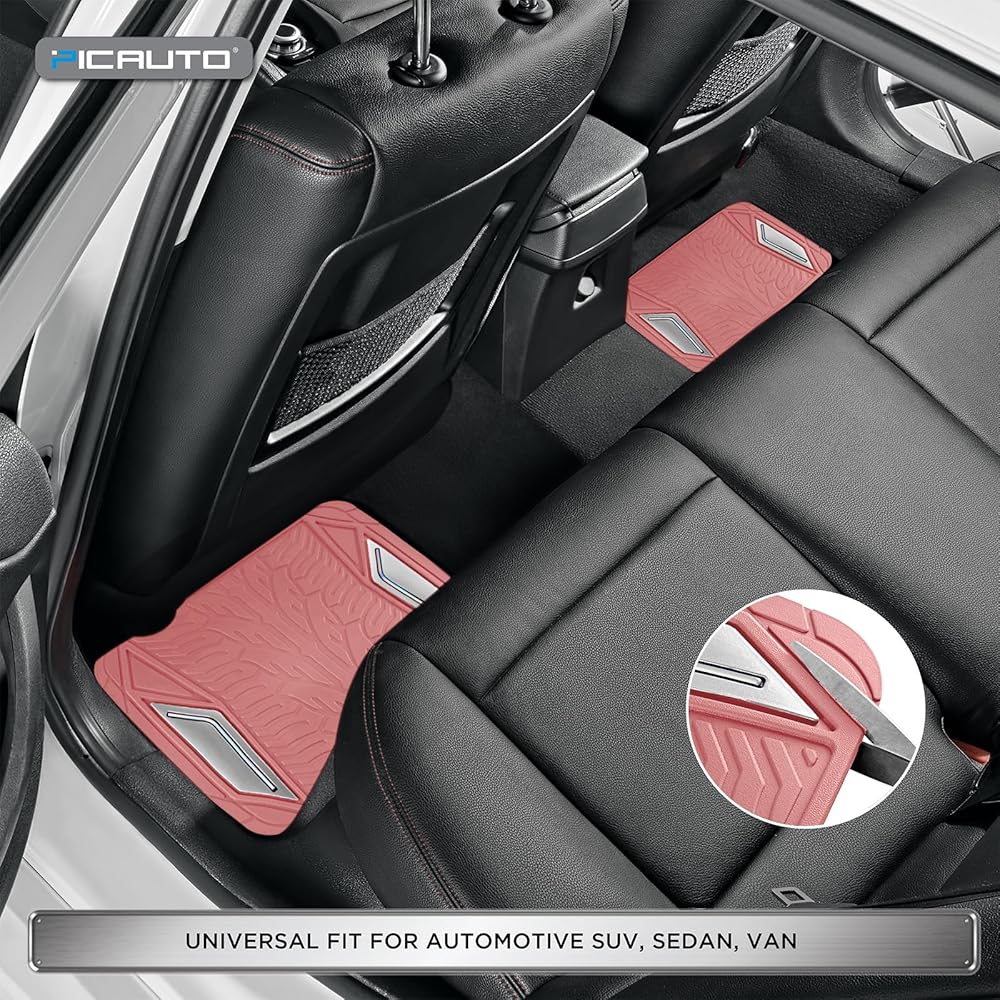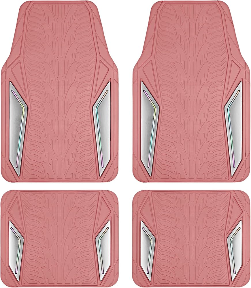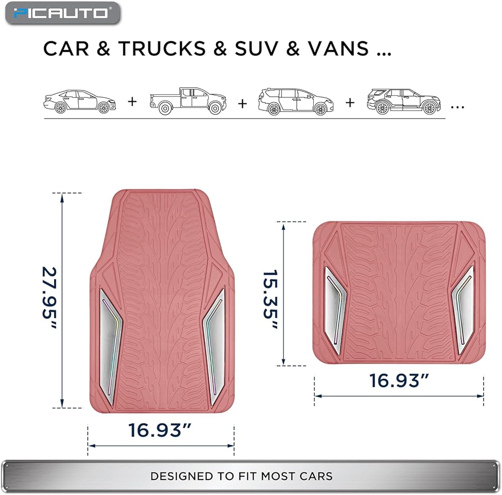 سجادات أرضية مطاطية وردية من PIC AUTO، طبقة ألومنيوم فضية مع سجادات أرضية أنابيب ملونة للسيارات، سجادات سيارة مع ظهر مانع للانزلاق، مناسبة لجميع الأحوال الجوية، بطانة مناسبة للسيارات وسيارات الدفع الرباعي والشاحنات والمركبات