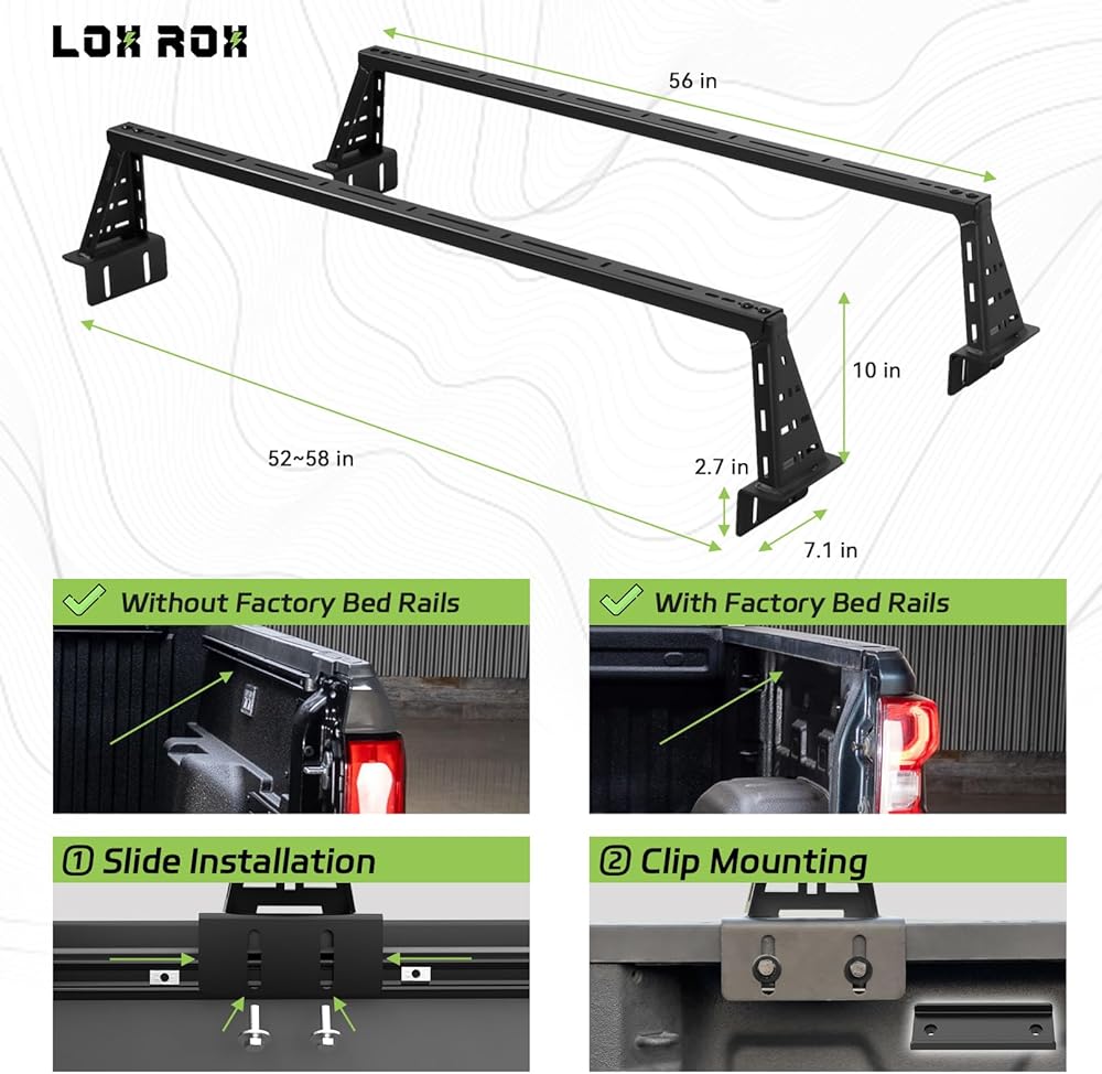 التوطين القابل للتعديل ✔ شريط متقاطع قابل للتعديل لتناسب Trucktacoma الصغيرة ، فورد رينجر ، جيب مصارع ، شيفروليه كولورادو ، وادي جي إم سي ، شاحنات التقاط الحدود