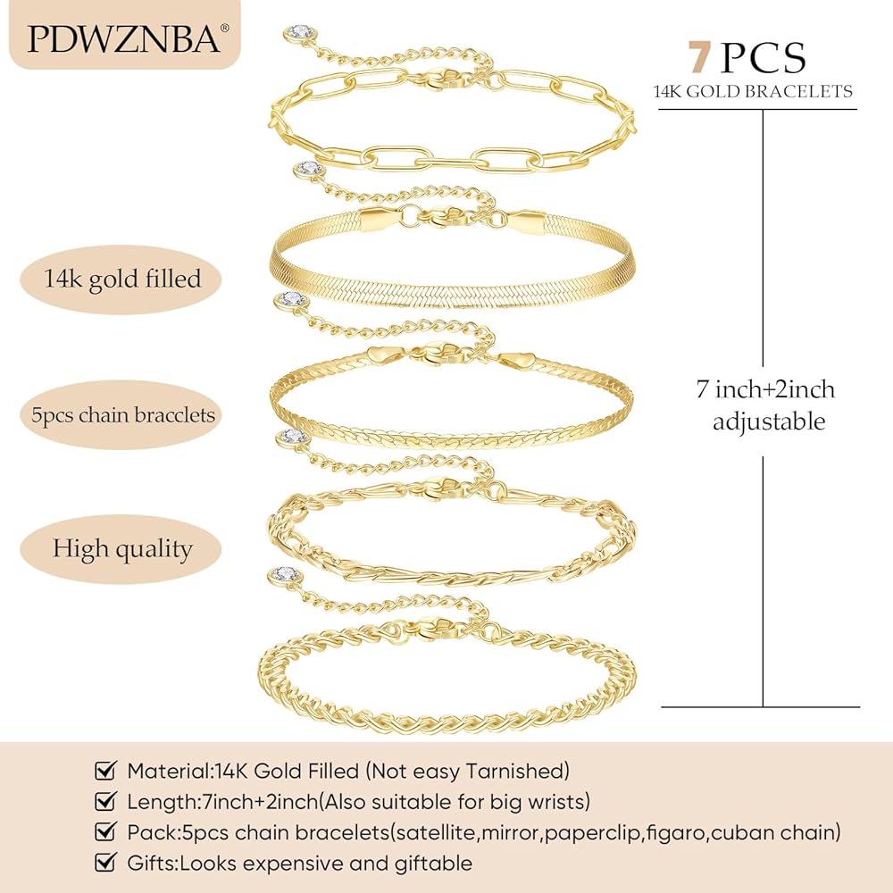 مواد مميزة مقاس 14 كيلو برسالة مميزة: كل سوار مصنوع بخبرة مع طلاء الذهب الحقيقي 14K الحقيقي ، مما يوفر تألقًا دائم ومقاومة للتشويه. تعتبر هذه المجوهرات الذهبية للنساء آمنة للبشرة الحساسة ومثالية للارتداء على المدى الطويل.