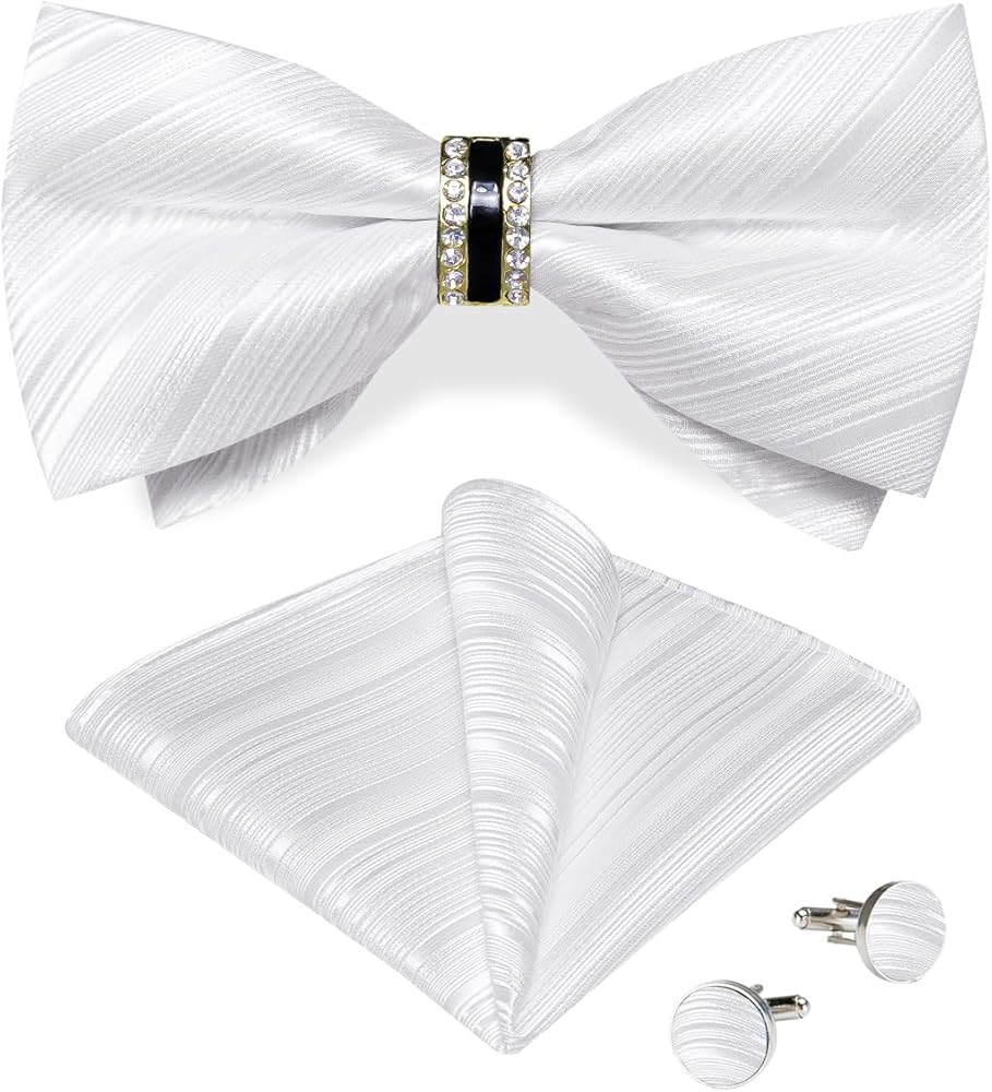 • 【مجموعة التعادل القوس】 1pcs ربطة عنق مسبقة ، مربع جيب 1pcs ، 1pairs أزرار أكمام ، حلقة التعادل 1pcs ، يمكنك الاختيار من بين أنماط ألوان مختلفة مثل paisley ، الأزهار ، الصلبة ، والمزيد