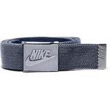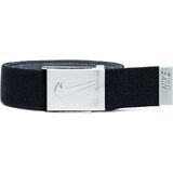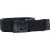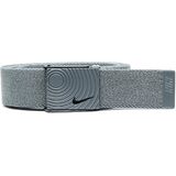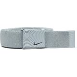 Stretch webbing reverses to second color, brushed silver plaque buckle with raised 'swoosh' logo, NIKE personalized fit technology, NIKE reversible technology and 38mm width