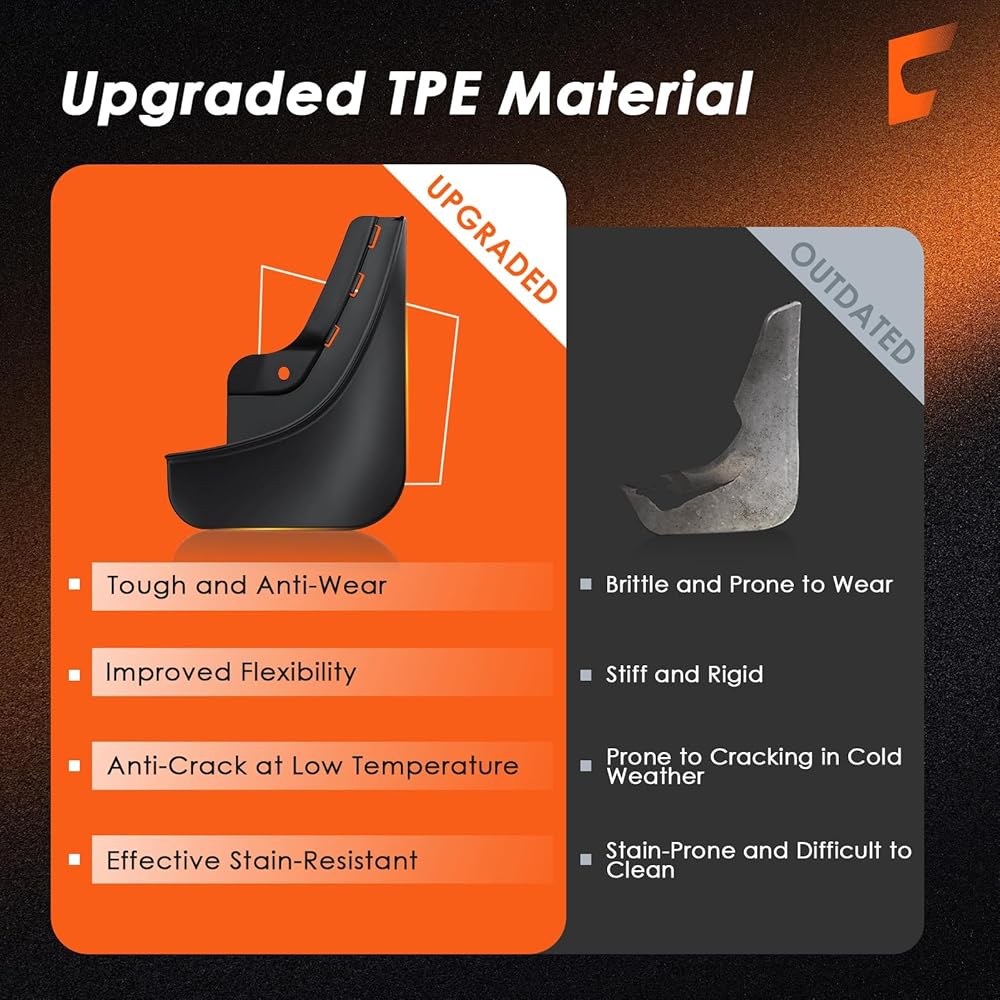 • مادة TPE عالية الجودة: يتم إنشاء حراس البقع لـ Tesla Model 3 Highland من TPE متينة ومرنة ، مما يوفر القوة الهيكلية اللازمة للحفاظ على شكل رفرف الطين دون تمزق بسهولة أو تشوه عند التأثير.