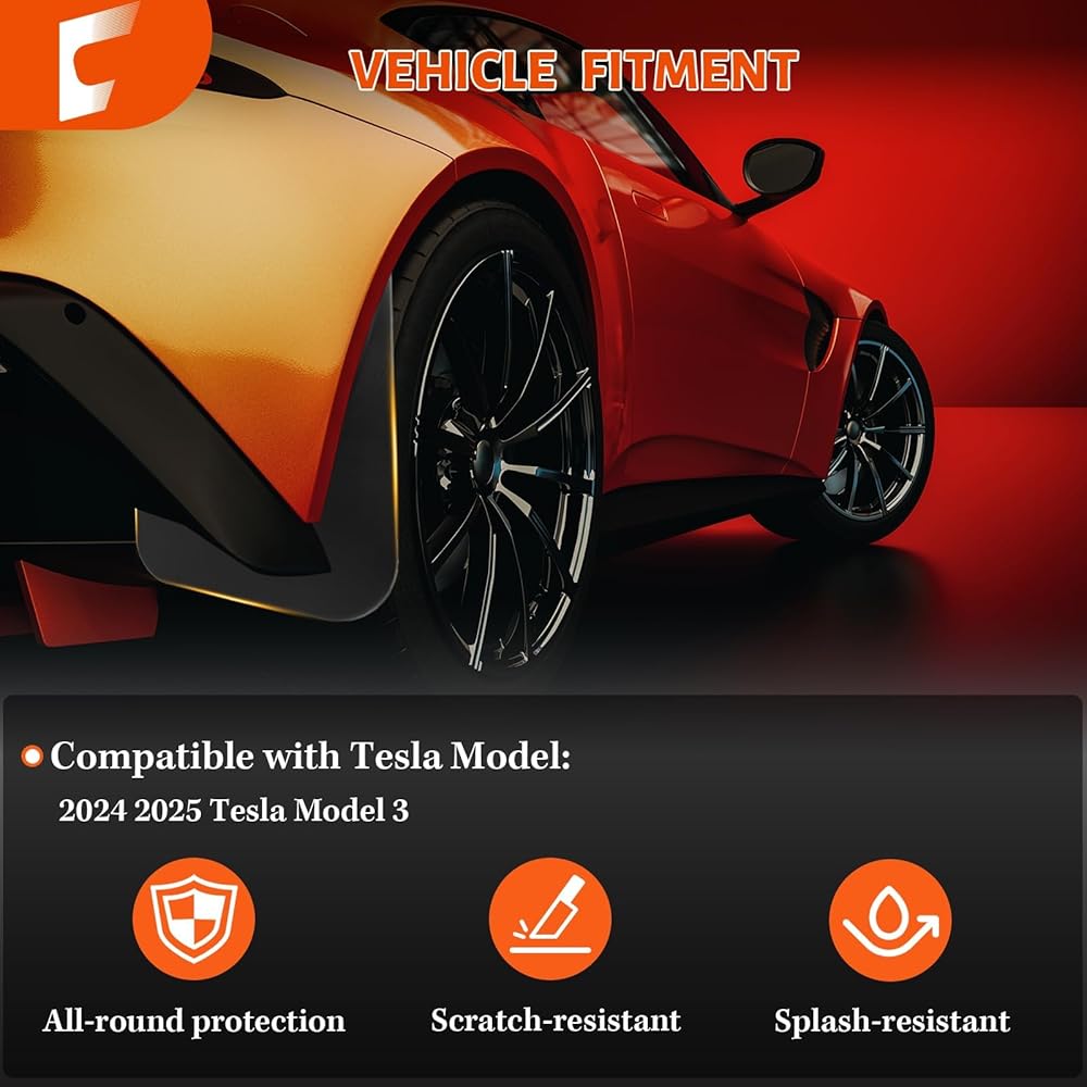 تمت ترقيته 2024 2025 طوابع الطين متوافقة مع ملحقات Tesla Model 3 ، لا توجد مصدات حرس حفر/شريط حفر وحراسة الإطارات مناسبة مع Tesla Model 3 ، جميع حراس طين واقي الطقس للمرتفعات ، 4 مساءً