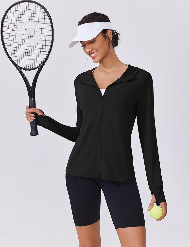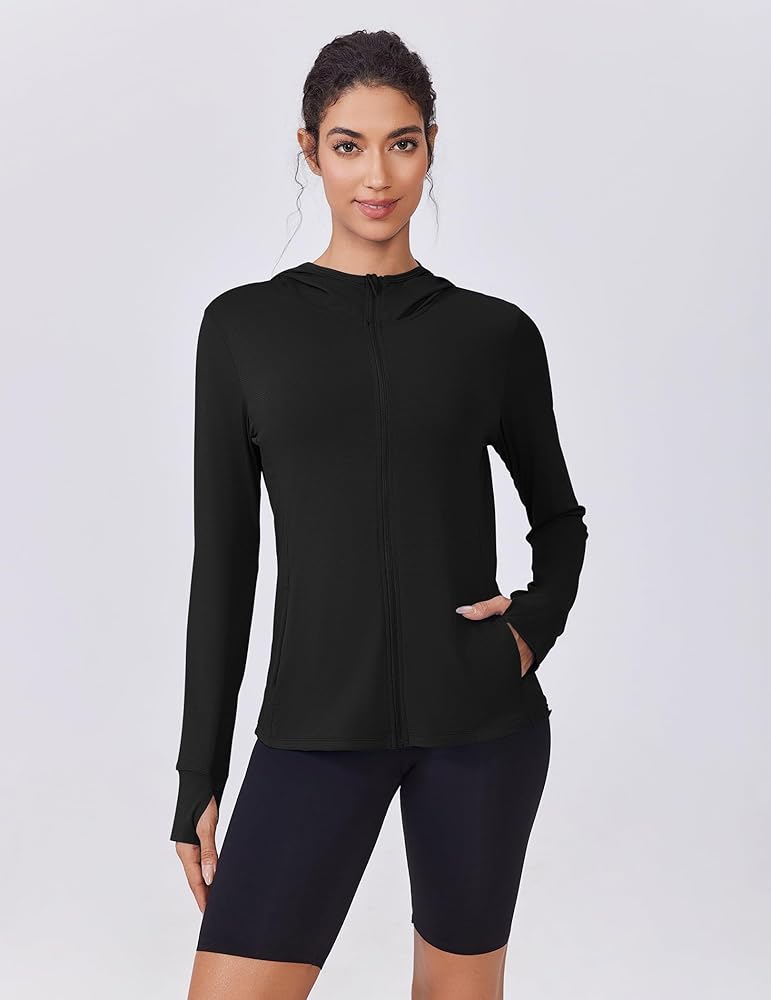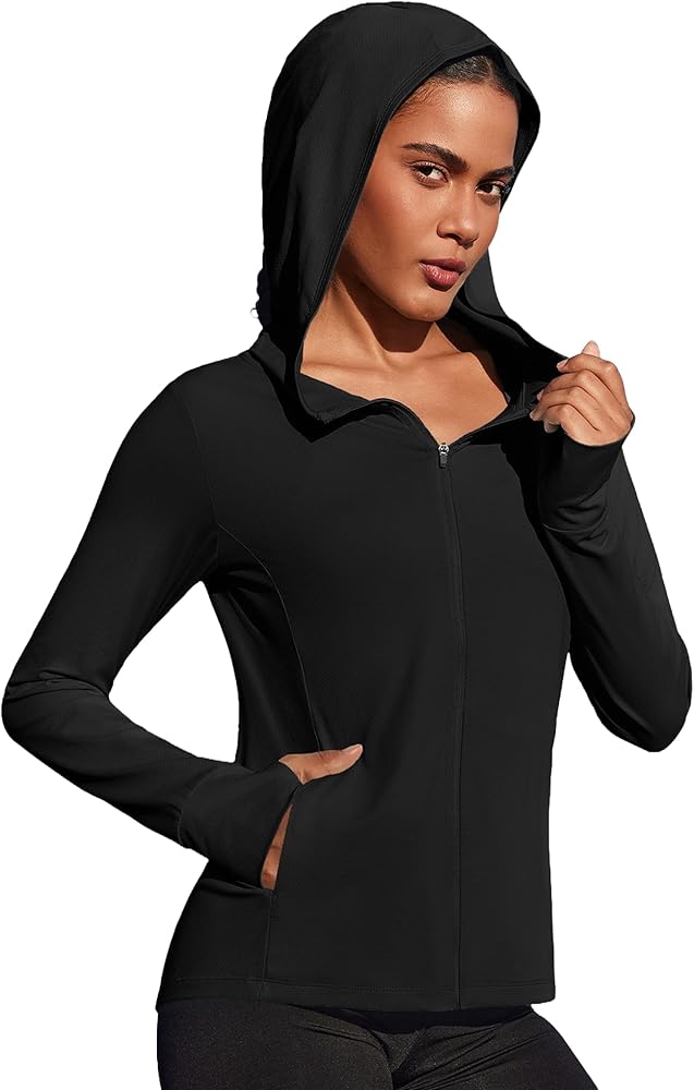 【Hoodie & Thumb Holes】 سترات تمرين للسيدات مع غطاء محرك السيارة يمنحك حماية إضافية من الرقبة. تضمن ثقوب الإبهام في مكانك في مكانها وإعطاء التغطية لحماية يديك من أشعة الشمس المباشرة.