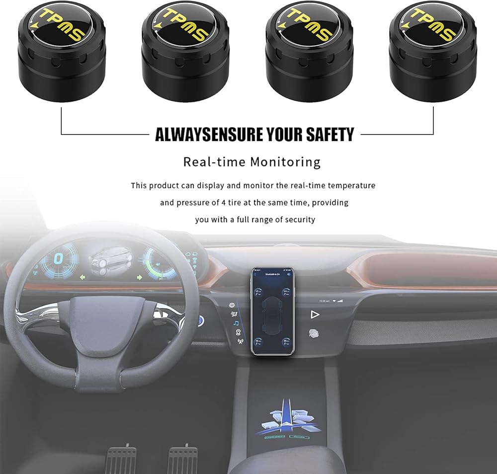 نظام مراقبة ضغط الإطارات من ليبي، 5 أوضاع تنبيه، مع 4 أجهزة استشعار خارجية TPMS، يدعم iOS وأندرويد، يعرض الضغط ودرجة الحرارة في الوقت الحقيقي (0.1-6.4 بار)