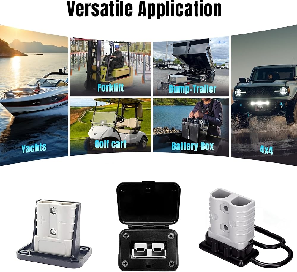 【Wide Range of Applicable 】The 50A 6-10 gague battery quick disconnect wire harness plug kit fits for power supply,forklifts, golf carts, tourist vehicles, tractors, electric scrubber, solar device and so on.