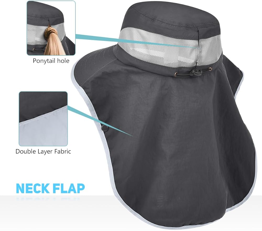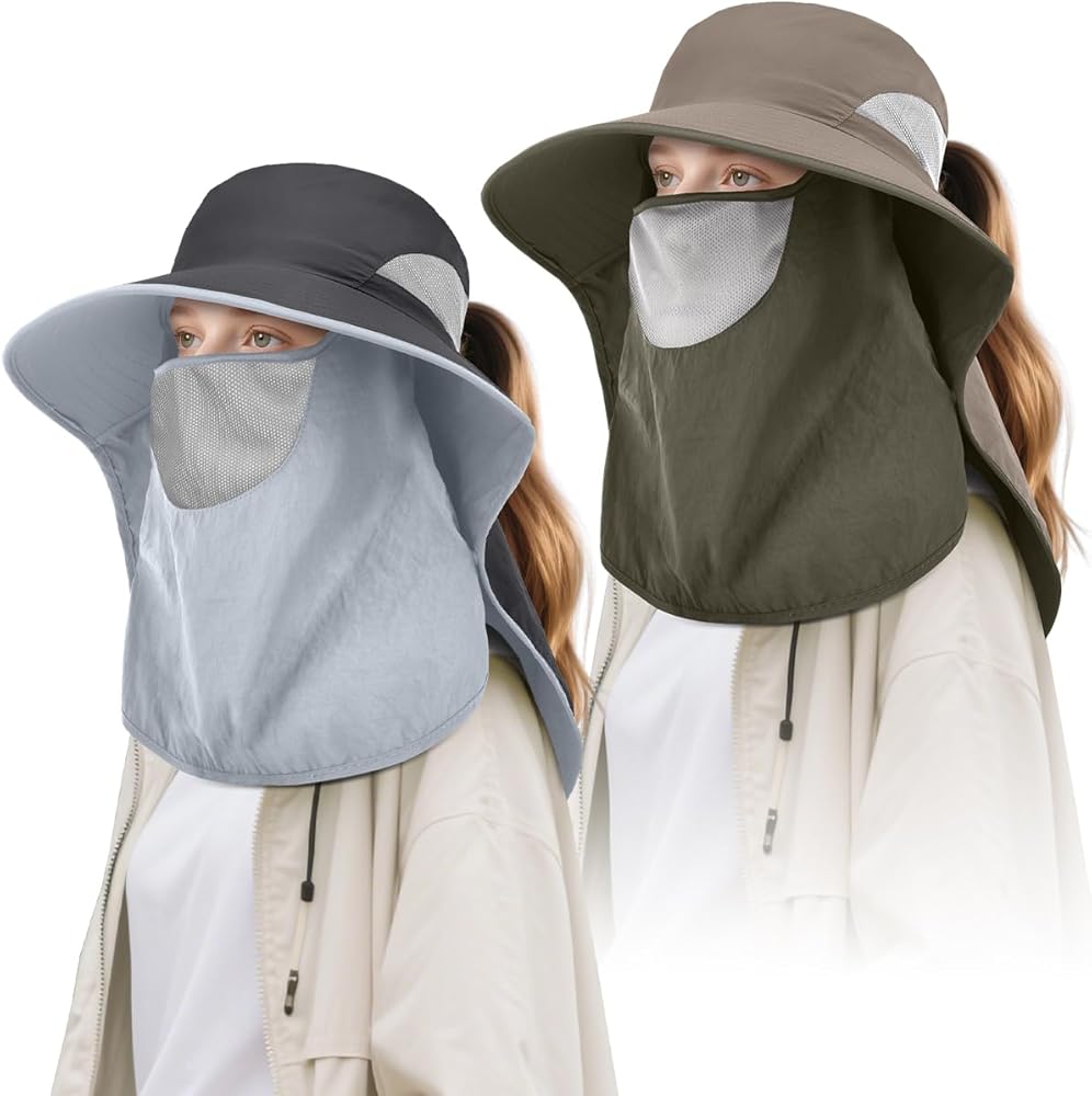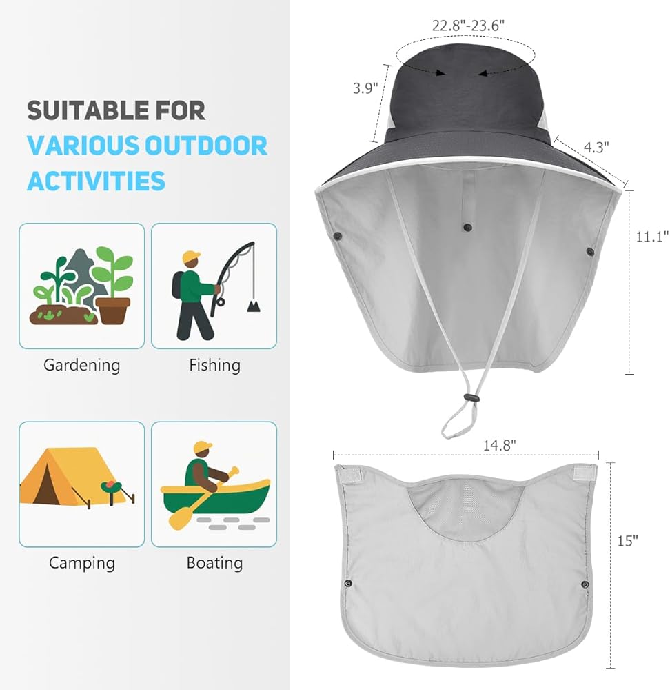 360 ° الحماية والقابلة للفصل: يمكن أن يعزز تصميم القناع القابل للفصل تأثير حماية الشمس للعينين والفم والأنف. Anti-UV و UPF 50+ حماية من أشعة الشمس الممتازة حافظ على حماية من الأشعة الضارة. حافة واسعة تحافظ على وجهك ورقبتك من الشمس القوية.