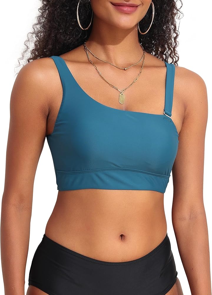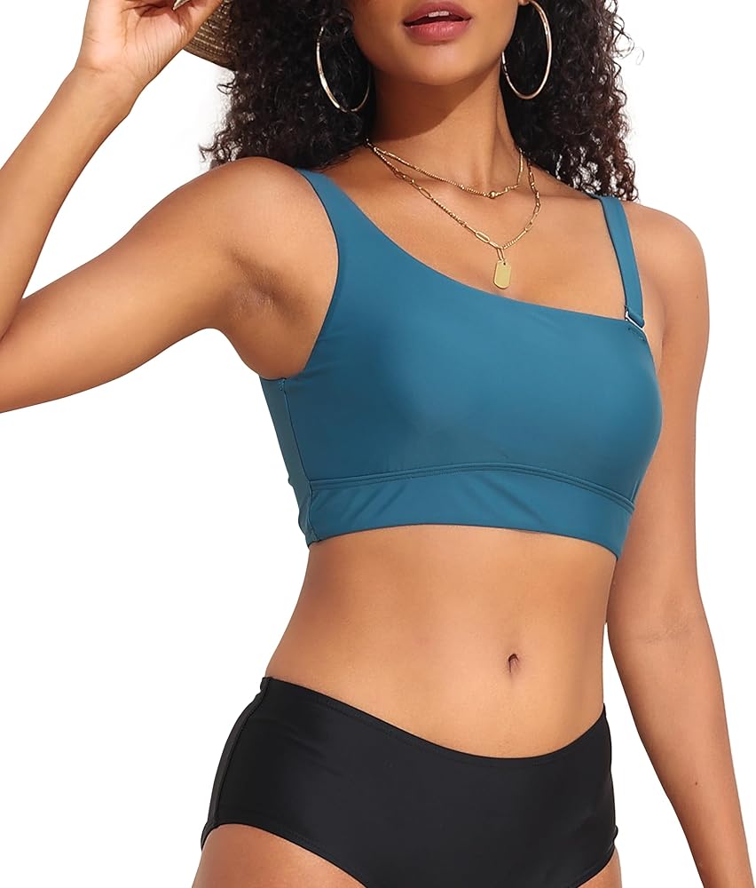 رقبة غير متناظرة أنيقة: قم بدفع أعلى بيكيني يتميز بخط عنق غير متماثل مميز يضيف لمسة عصرية لمجموعة ملابس السباحة الخاصة بك