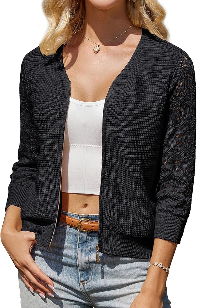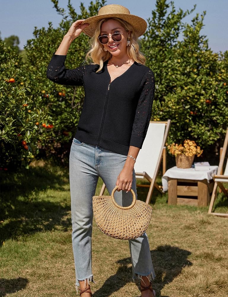 التصميم الفريد: ميزات سترة كارديجان 2025 للسيدات في Zip Up و 3/4 كم وعنق v و snitbed. يضيف Zip Up لمسة من التفرد ، مما يجعل هذه البهارات الخفيفة الوزن من Cardigan لكل من الإعدادات غير الرسمية وشبه الرسمية. ويضيف غلاف الكروشيه لمسة من السحر الأنثوي لهذا سترة.