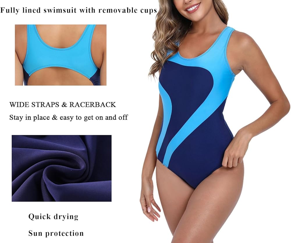 توفر ملابس السباحة الكاملة للتدريب على النساء مع الأشرطة الواسعة ومتسابقات راحة ودعمًا إضافيين لتقليل إثبات المياه ، وصدرية الرف المدمجة مع أكواب قابلة للإزالة ناعمة