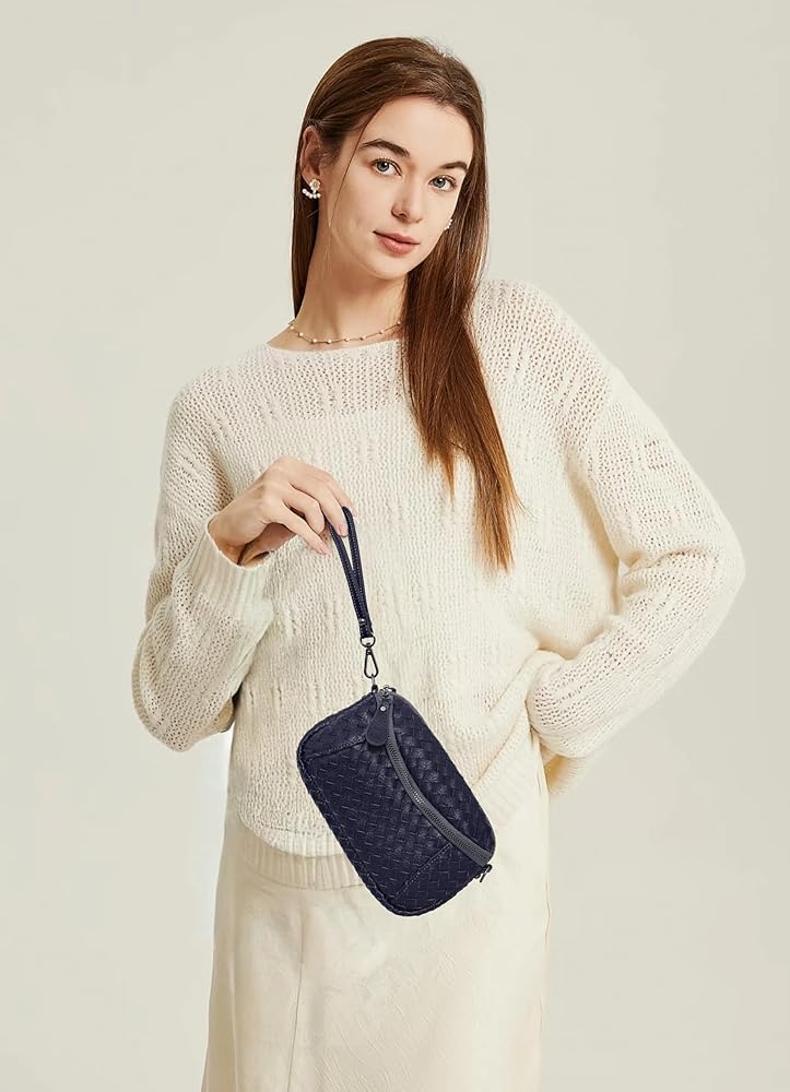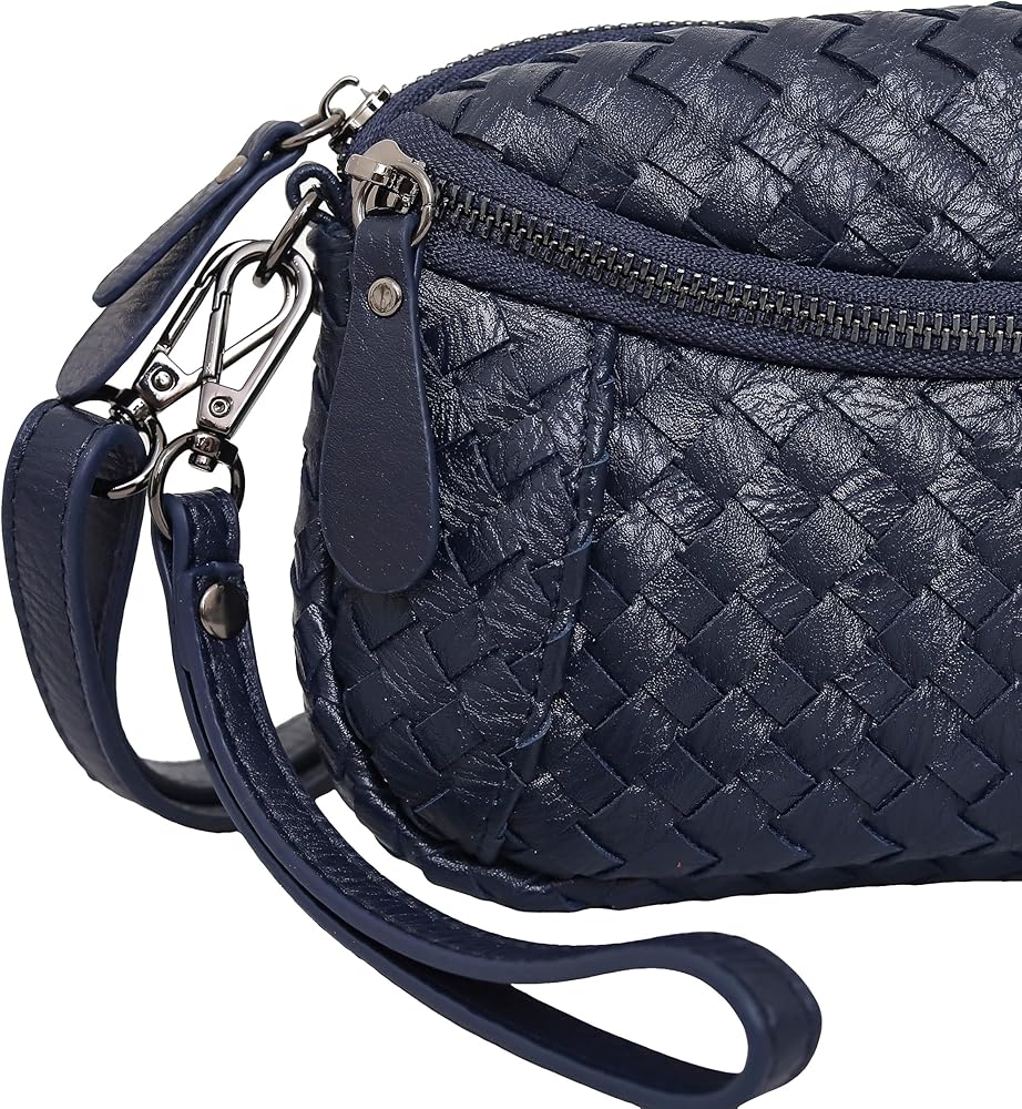 حقيبة يد متشابكة من الجلد النباتي للنساء محفظة كتف صغيرة منسقة مع المعصم والحزام قابل للتعديل