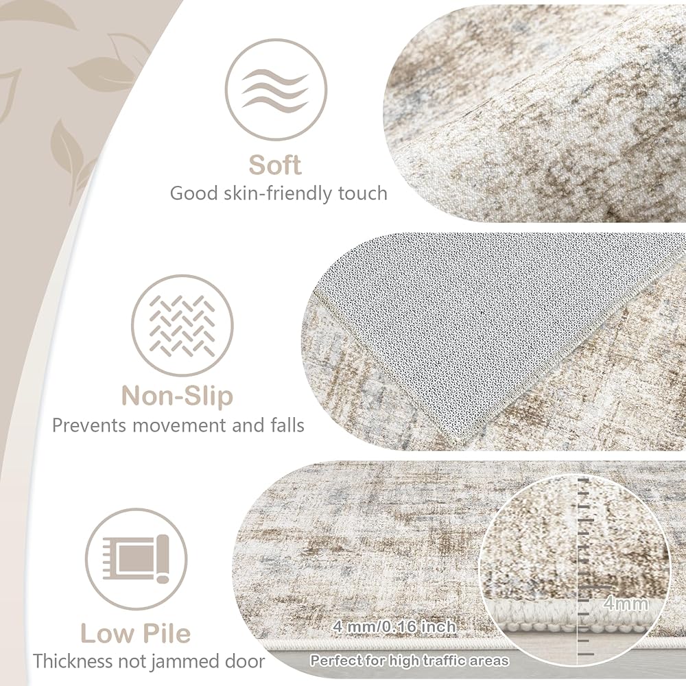 Pet & Kids Friendly Rug: لدينا Beige Brug بنسج مسطح احترافي مع حواف معززة وتصميمًا منخفضًا للكومة حتى لا تتعثر Pets Pets في الكومة ، مما يجعل سجادة المنطقة الكبيرة مناسبة للأطفال والحيوانات الأليفة للعب عليها.