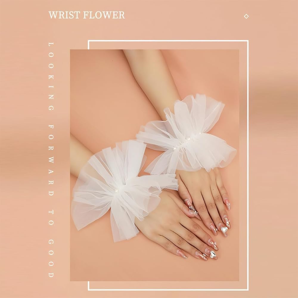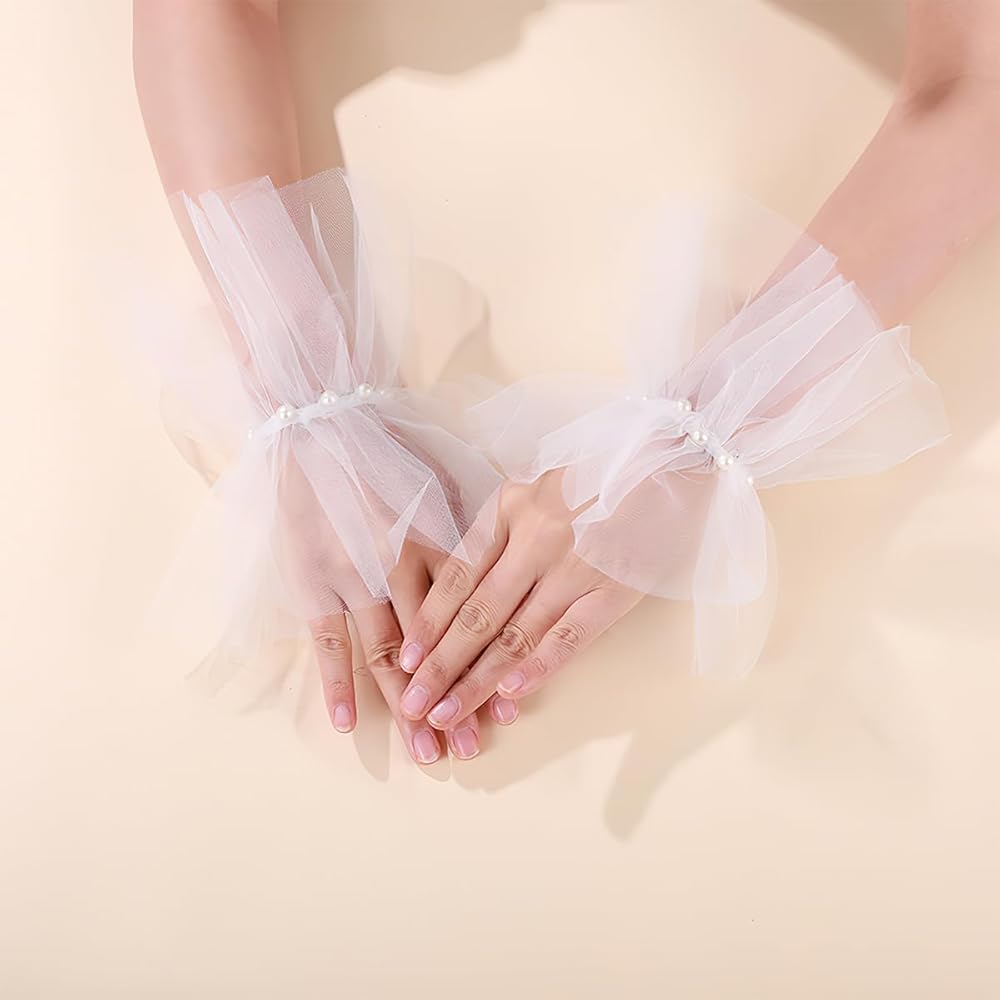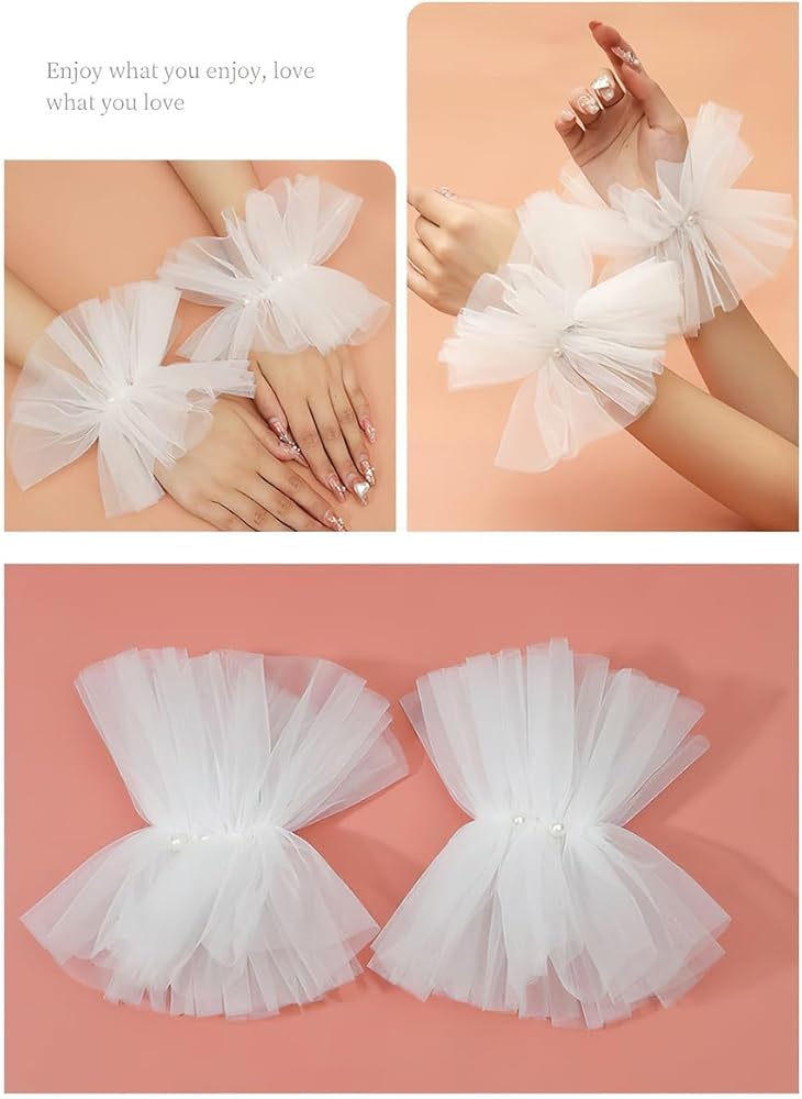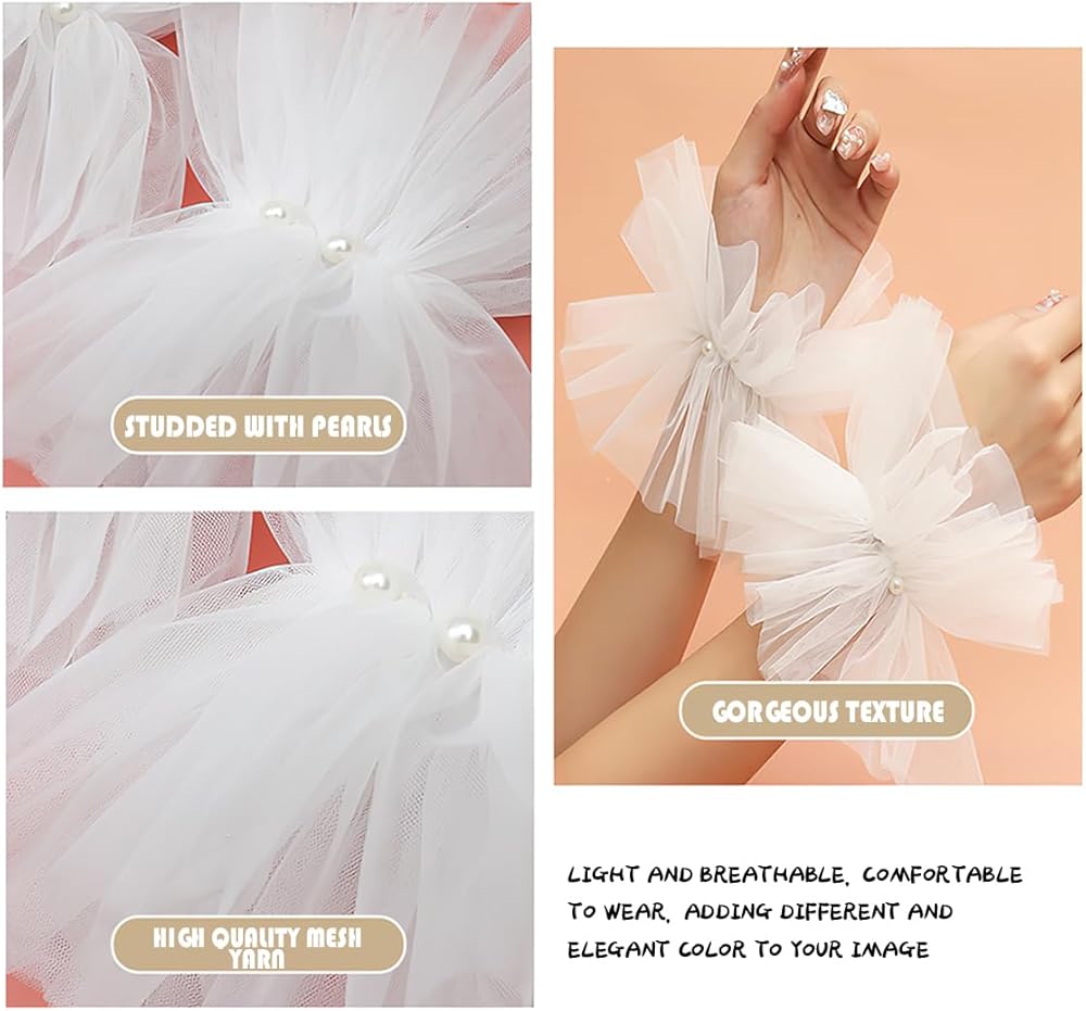 Package Includes:4pcs pearl tulle short lace cuffs (2 pair)