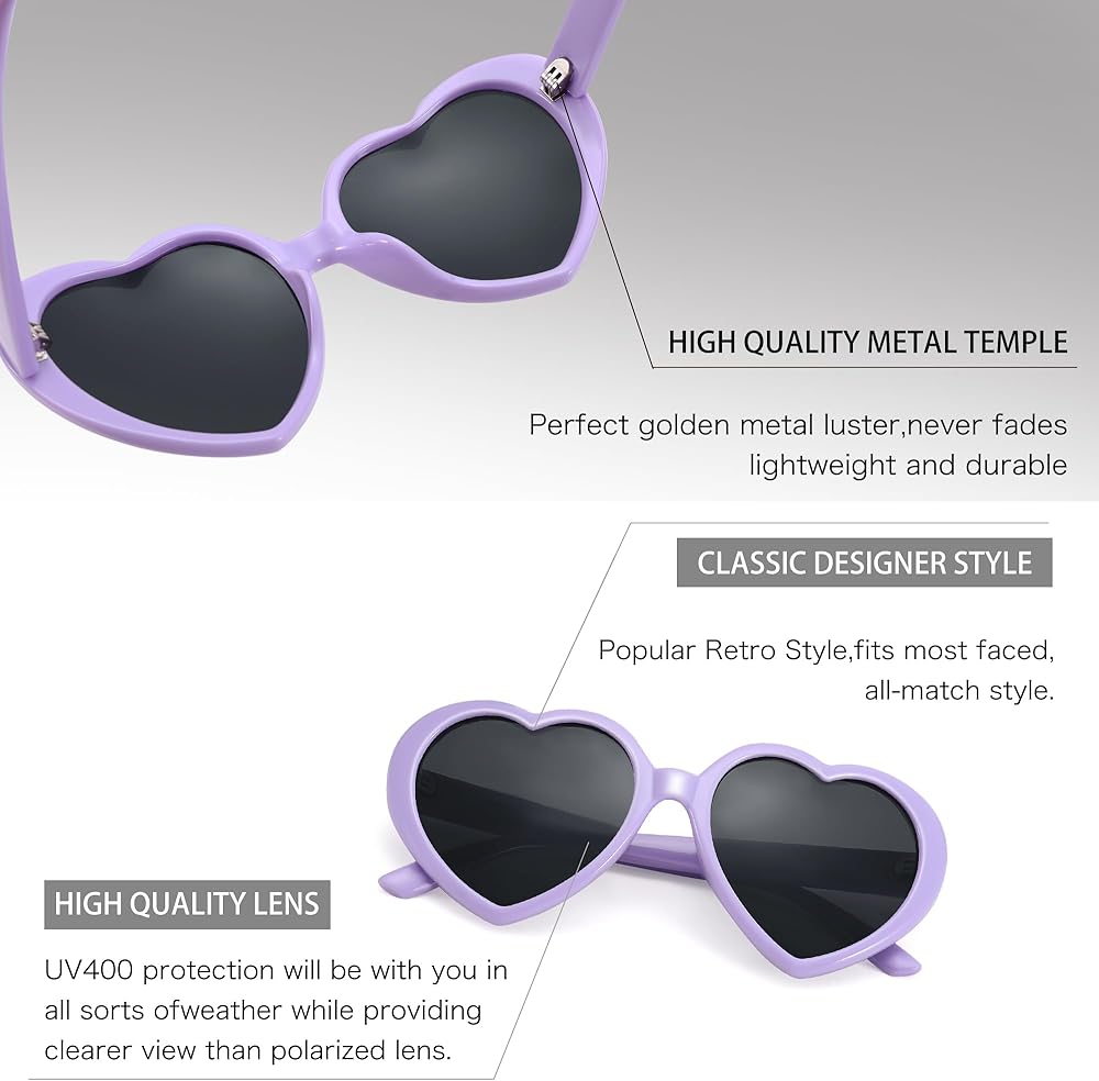 • تصميم جذاب: أضف Flair إلى أي جماعة مع هذه النظارات الشمسية الأنيقة واللطيفة على شكل قلب ، مما يجعل طفلك أكثر ثقة وجاذبية في مختلف الأنشطة أو الحفلات في الهواء الطلق مثل Party Rave و Halloween و Dishirt و Day للأطفال.