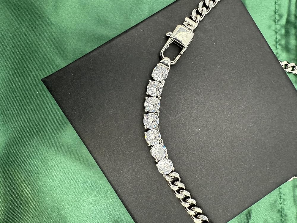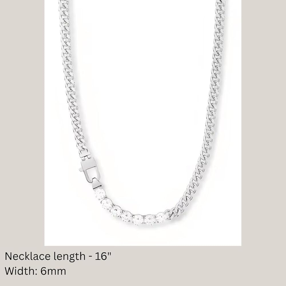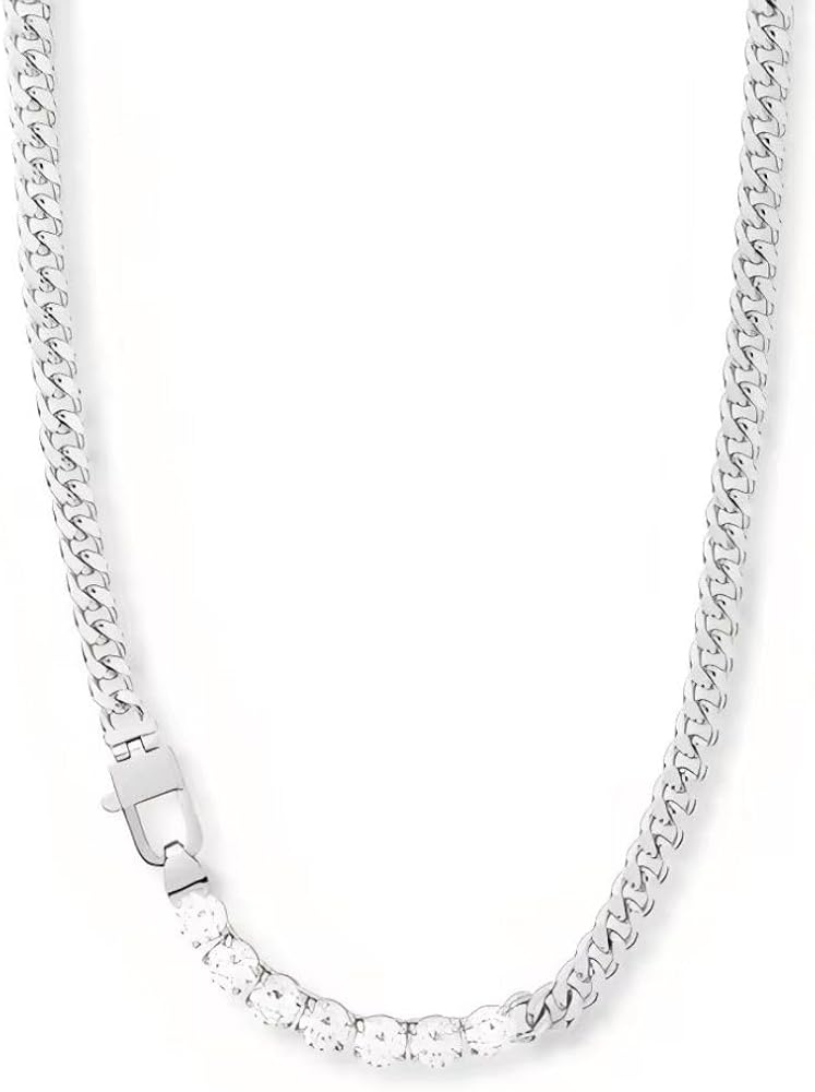 Trendy Iced Out Chain Necklace: Stand out with this trendy iced out chain necklace. A remarkable addition to any collection of silver necklace for women, making it a must-have for fashion-forward individuals seeking luxury tennis necklaces for women.
