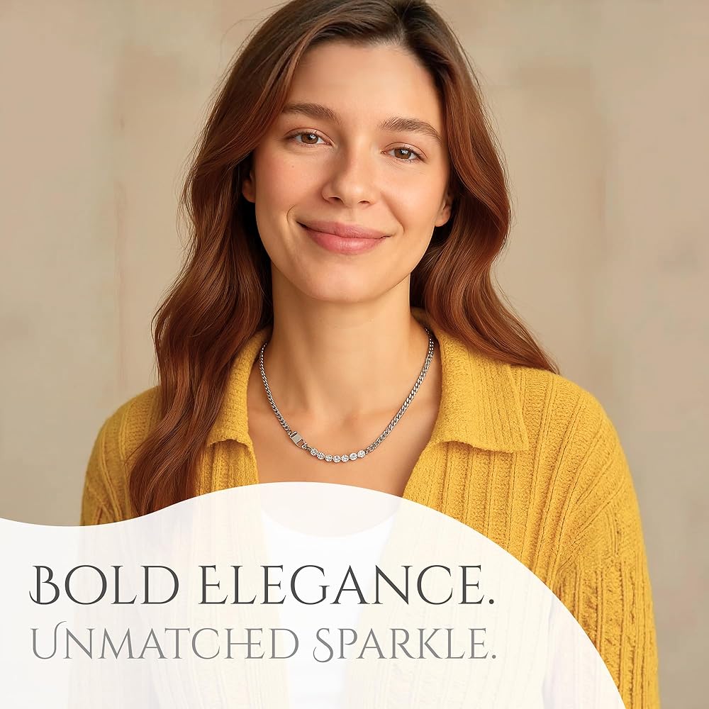 Perfect Size & Fit: The Eliana Jane Zircon Chunky necklace for women measures 18 inches, ensuring a comfortable fit. Ideal as a fashion accessory, this piece of jewelry for women pairs beautifully with gold necklaces stack, silver Jewelry or other initial necklaces for women.