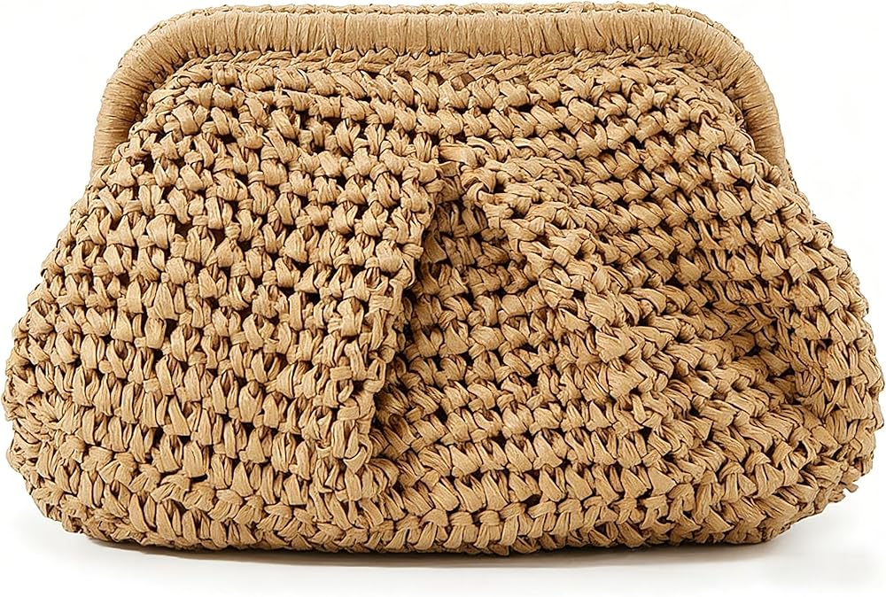 محفوظات القش الصيفية شاطئ المنسوجة محافظ للنساء أكياس كتف كتف سحابة