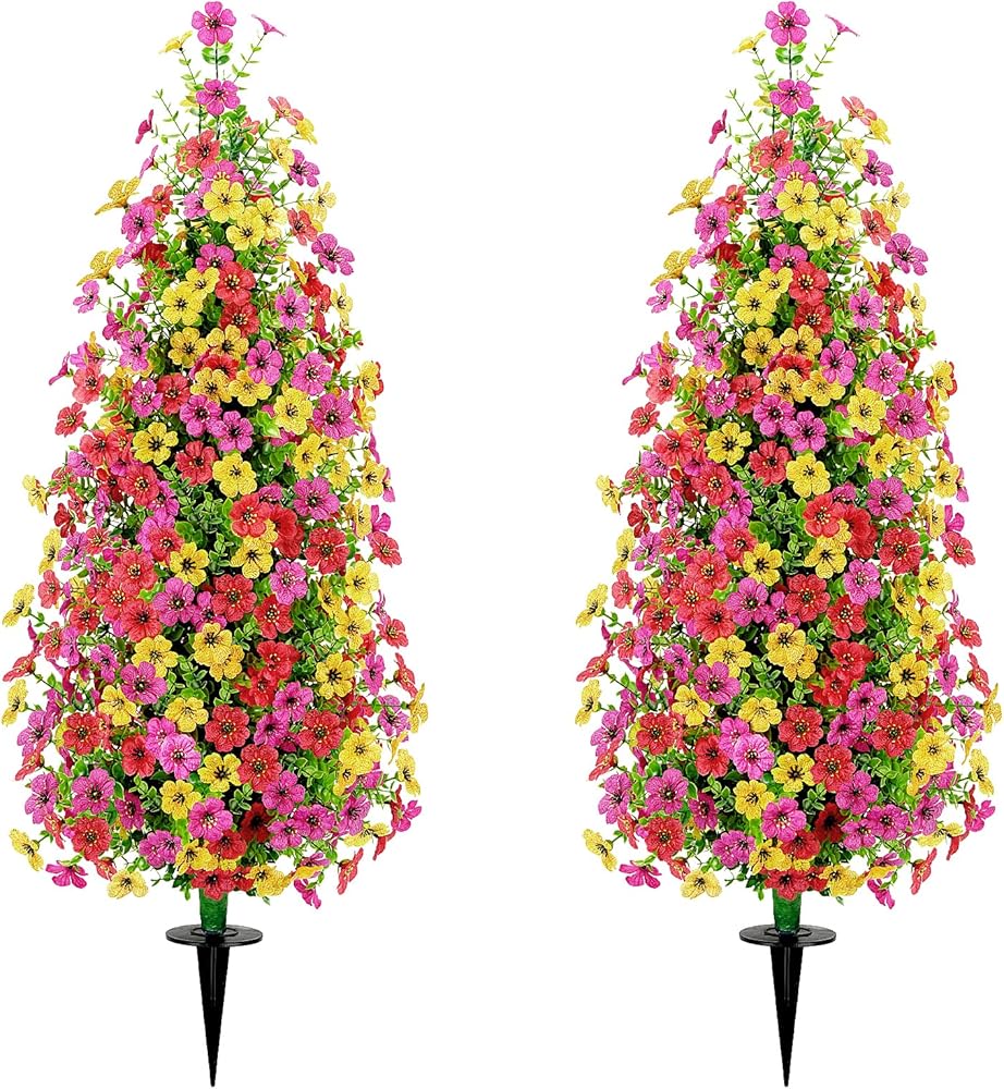 2 قطعة 3.6FT أشجار توبياري اصطناعية في الهواء الطلق، زهور صناعية شجيرات شجرة الأرز مقاومة للأشعة فوق البنفسجية للمزارعين الداخليين في الهواء الطلق لتزيين الهالوين (خلط الألوان)