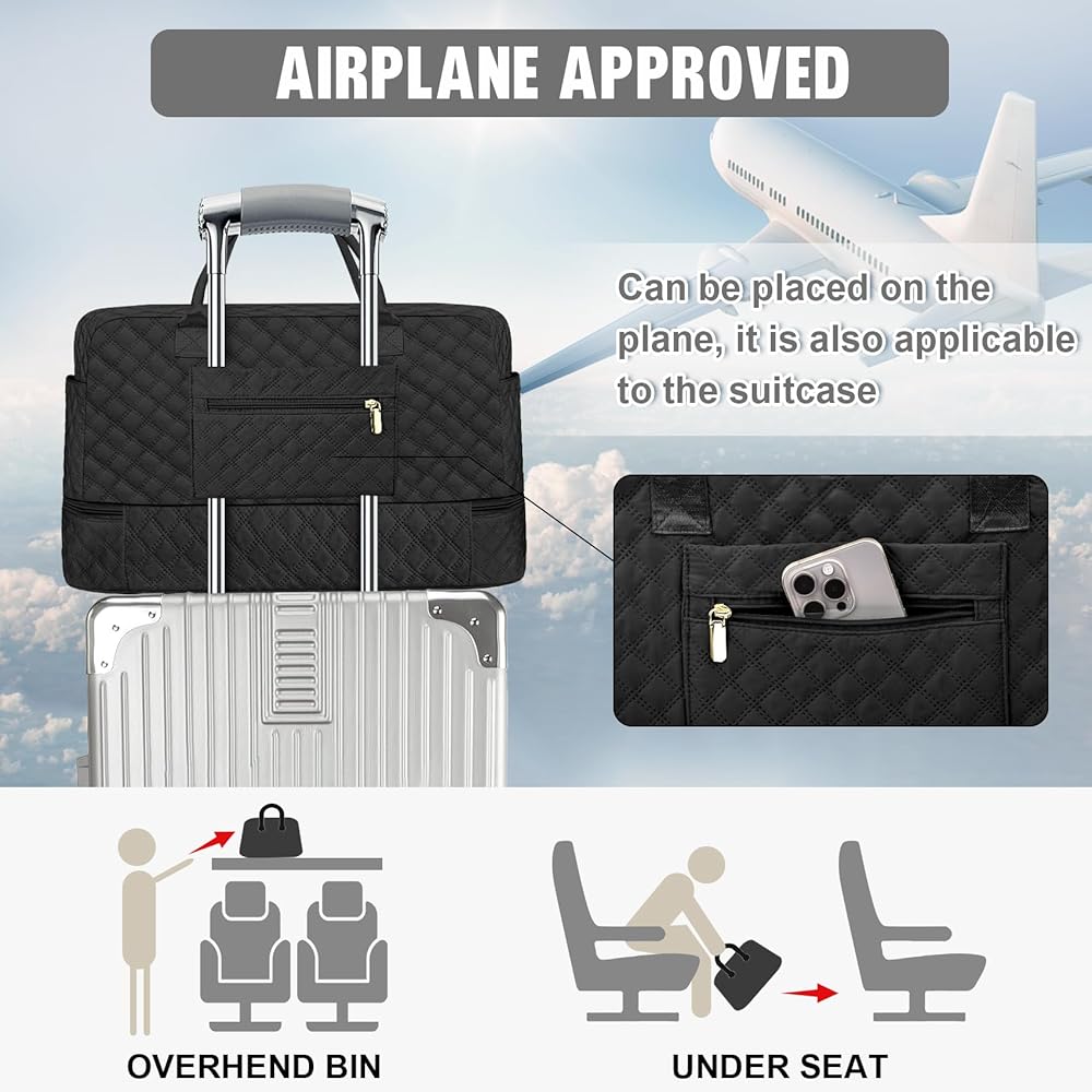 أكياس واقية من الطائرات الصديقة للطيور: تقيس حقيبة الصالة الرياضية للنساء 21 × 9x14 بوصة ، وتلبية معظم متطلبات الأكياس الدولية. يناسب المقصورات العلوية وتحت المقاعد في الطائرات ؛ يمكن تعليق حزام الأمتعة على الجزء الخلفي من أكياس عطلة نهاية الأسبوع للنساء على حقيبة لتحرير يديك