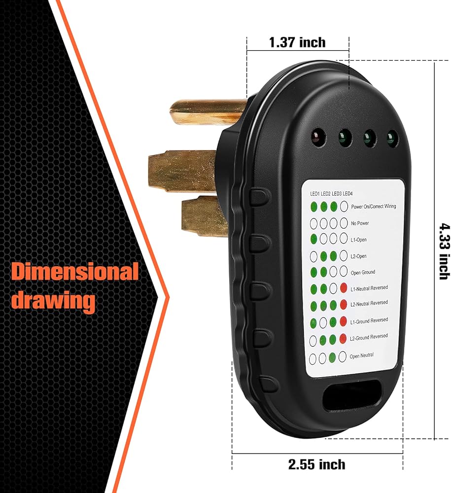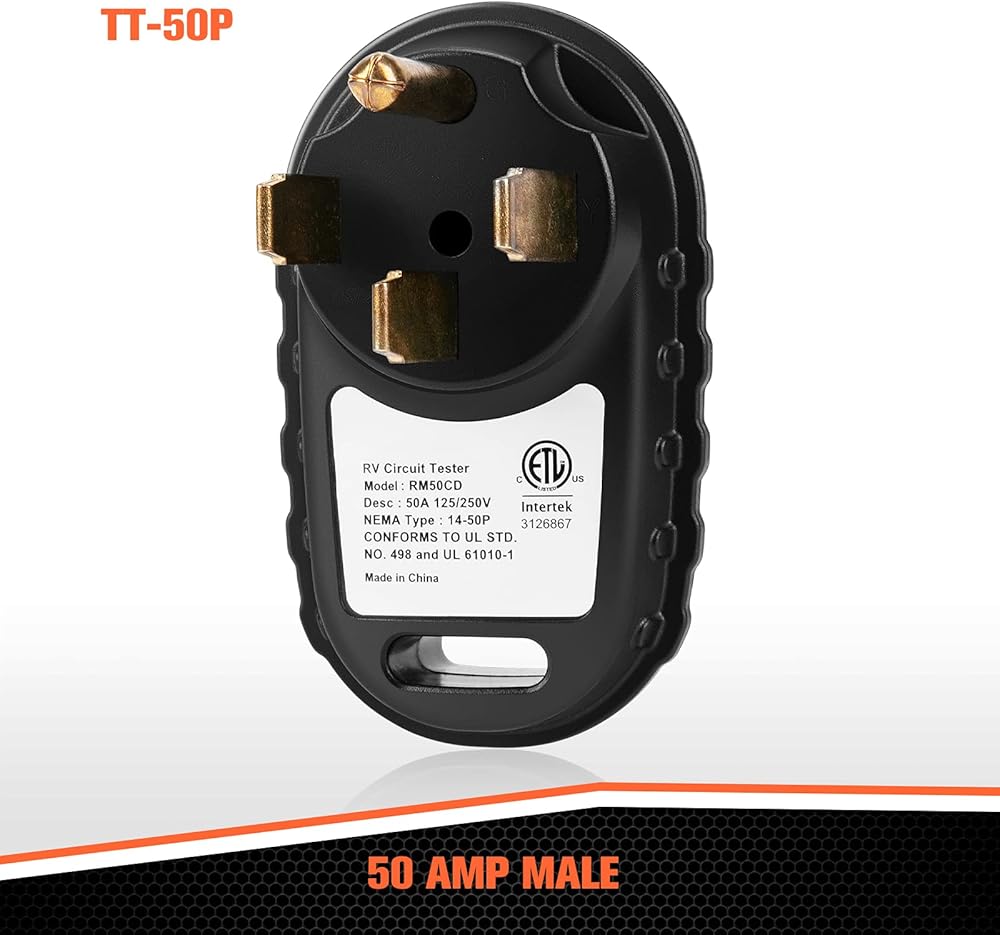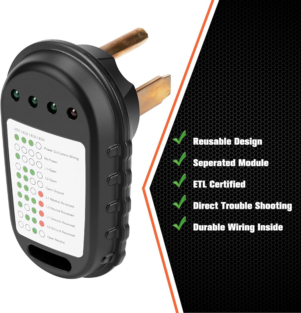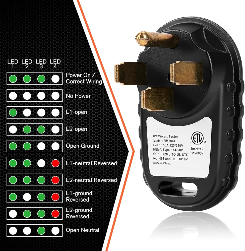 Welluck 50 AMP RV Circuit Analyzer ، 50a 125v/250V tester tester مع LED مؤشر LID 14-50p 50 amp slabe for campers ، Travel Trailers (ETL Certified)
