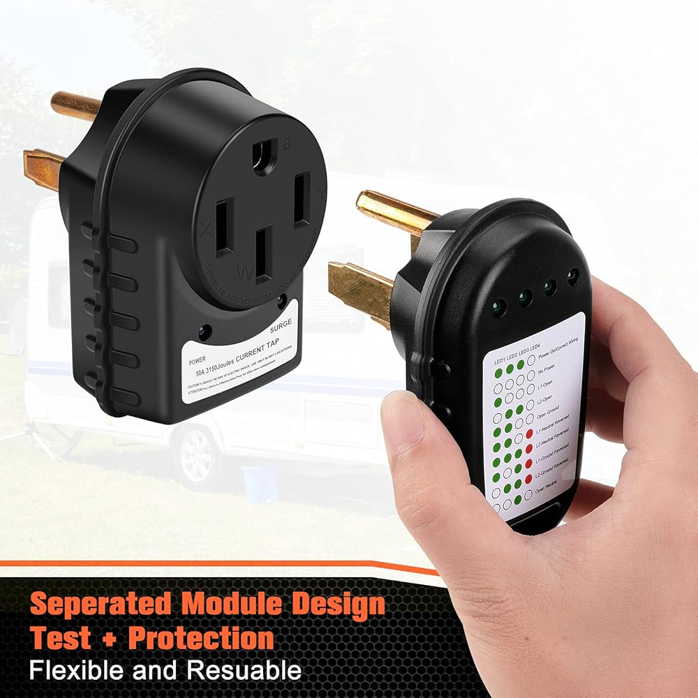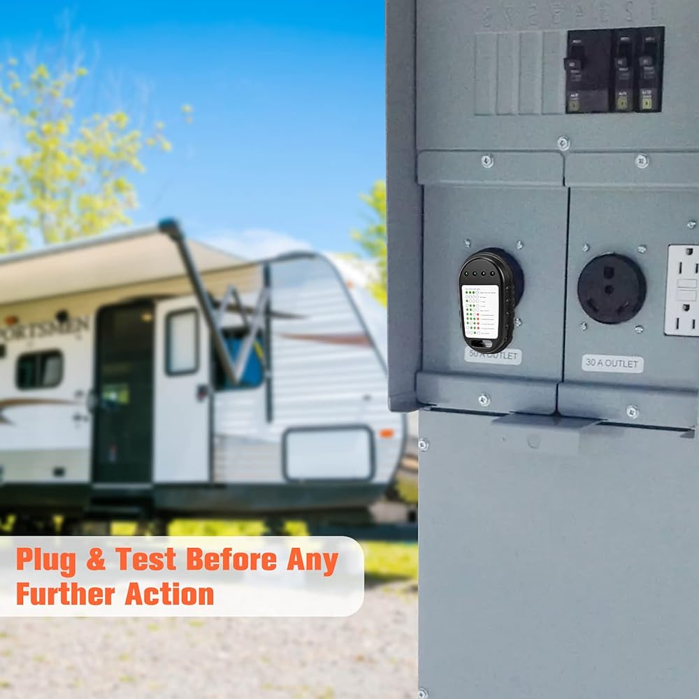 • 【RV Circuit Analyzer 50 أمبير】 هل من الآمن توصيل العربة الخاصة بي عند الوصول إلى موقع مخيم جديد؟ يساعد Welluck RV قاعدة التمثال على اكتشاف أخطاء الأسلاك بسرعة عند قاعدة التمثال وضمان آمن لتوصيل RV أو العربة.