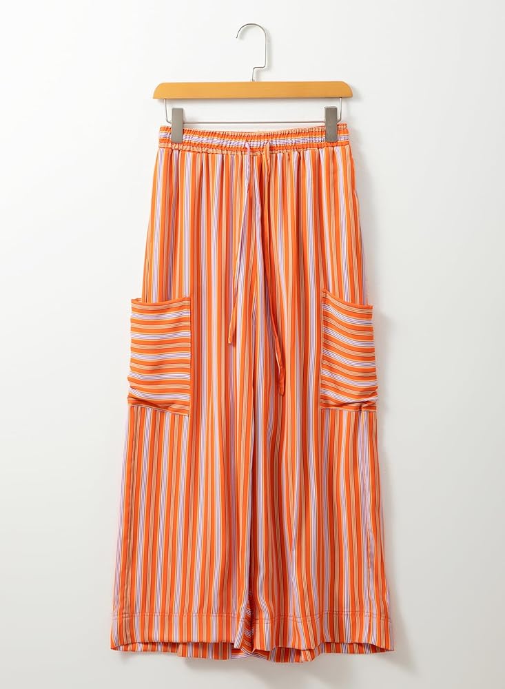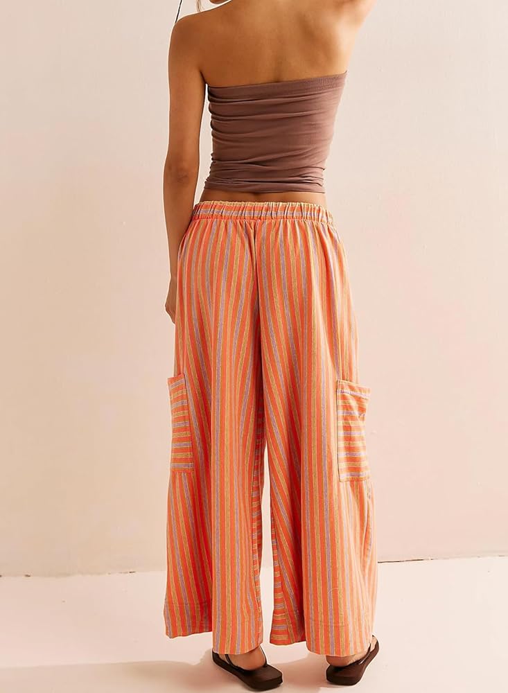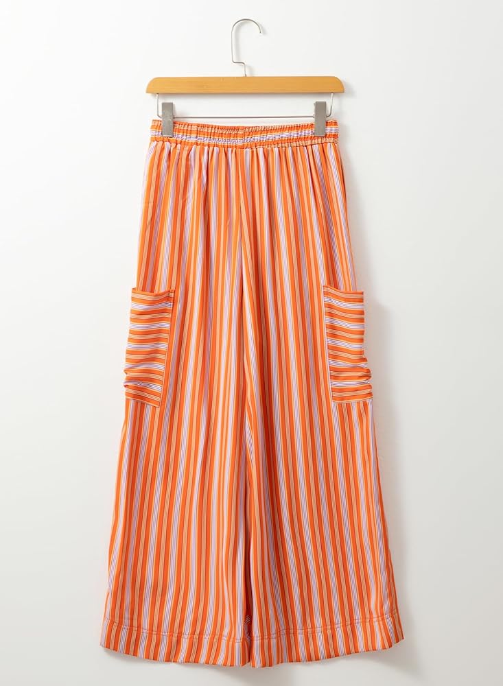 الميزات: الخصر المرن المرن ، تصميم الرباط ، الساق الواسعة المستقيمة ، تصميم مخطط ، سراويل صالة فضفاضة مع جيوب ، سراويل شاطئية للنساء ، سروال مريح وأنيق متدفق
