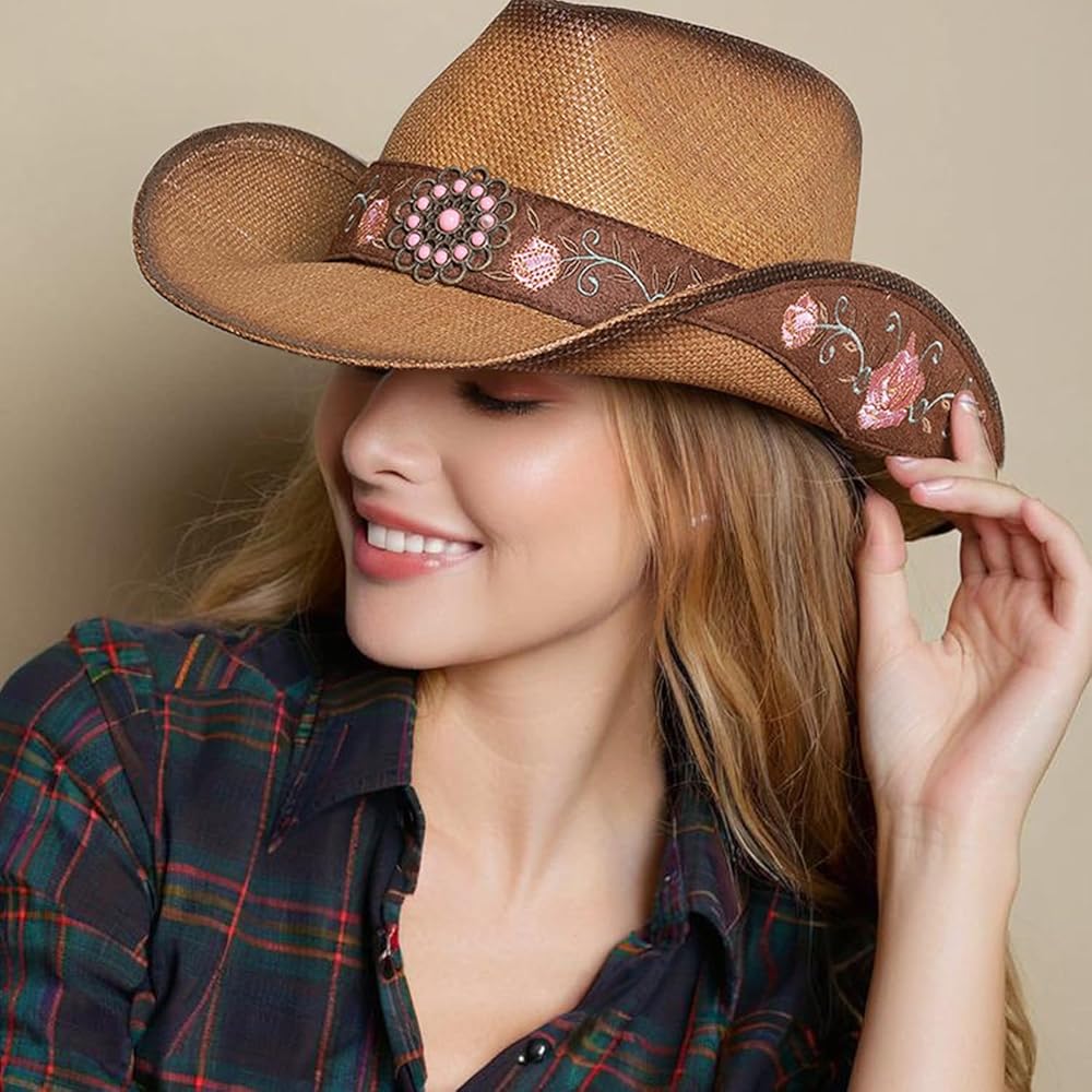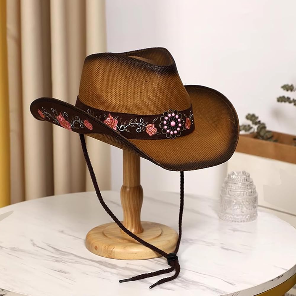 تصميم رائع: يتم صنع قبعة رعاة البقر هذه باستخدام التطريز المصنوع من الفاوانيا المصنوعة يدويًا ، مصنوعة من مواد قش طبيعية عالية الجودة ، والحرفية الرائعة تجعل قبعات رعاة البقر تقف اختبار الوقت ومقاومة البلى.