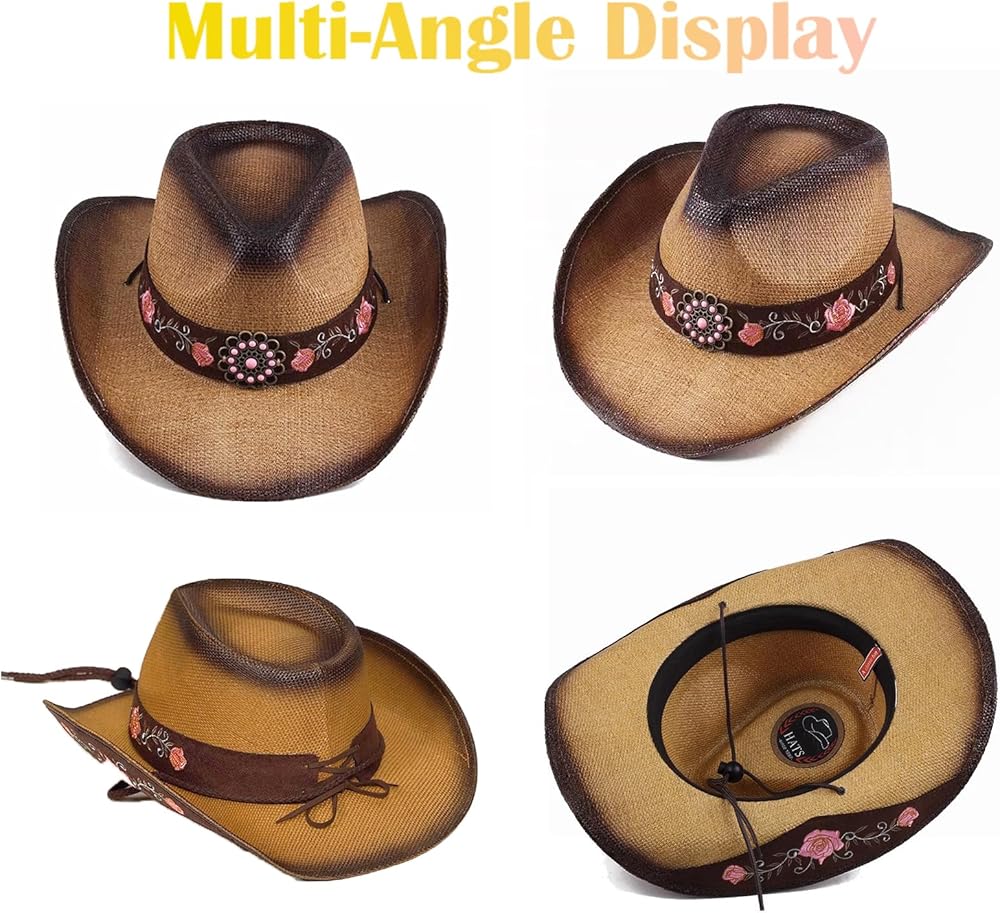 التنفس والمريح: مع تاج واسع وحافة عريضة ، توفر قبعات رعاة البقر القش هذه تهوية وارتياحًا وافرة ، حتى في الأيام الحارة. تتيح المادة القابلة للتنفس الدورة الدموية ، مما يجعل رأسك باردًا وجافًا.