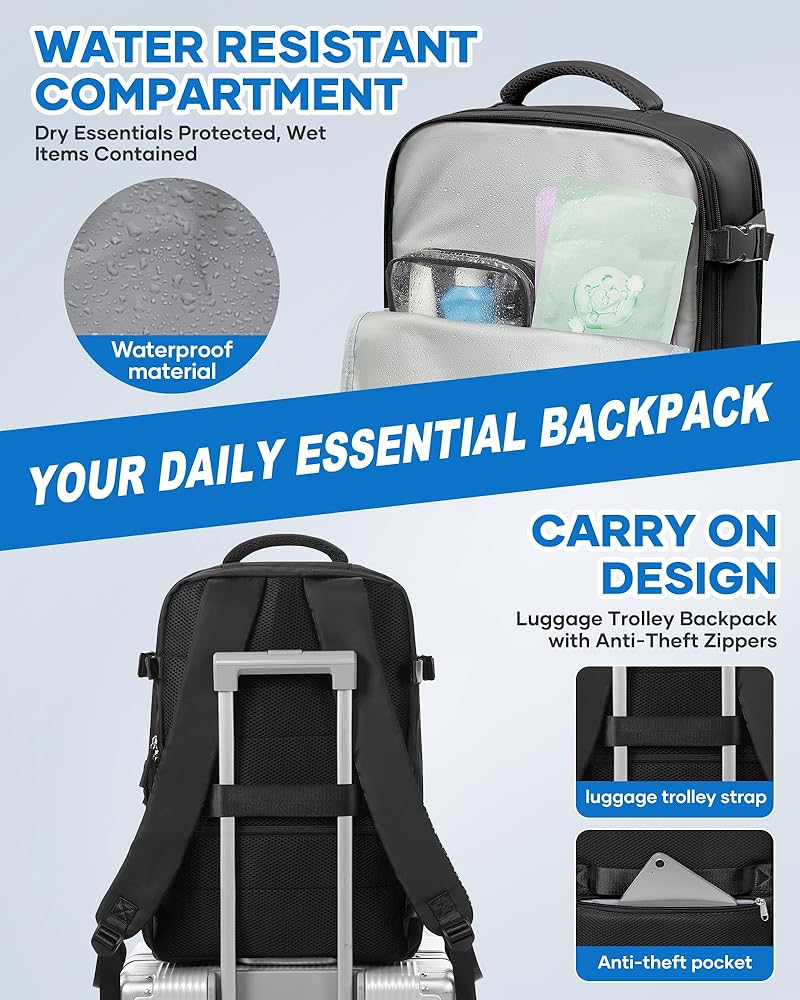 • 📣Multi-Compartment Design - Features dedicated laptop compartment,wet/dry separation zone and separate shoe storage to efficiently organize clothes, electronics and footwear - perfect for travel, gym sessions and daily commute.