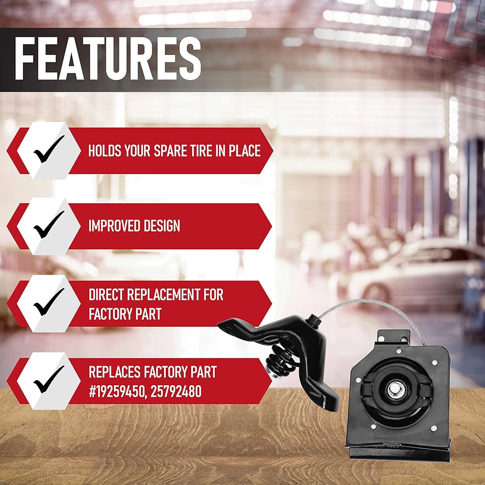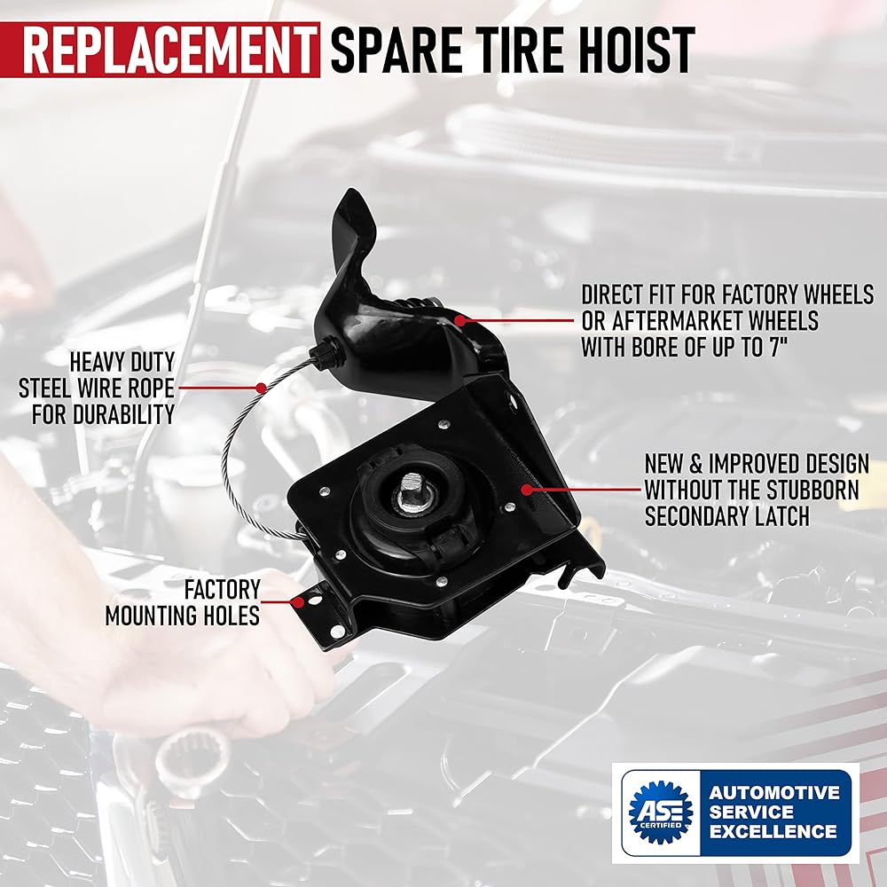 OEM Fit, Quality, Finish - While this is not a genuine OEM part, it is a direct replacement and it will fit and work exactly like the factory part. This spare tire hoist has the updated design and does not have the secondary latch or lock that your old spare tire hoist has which can be a pain to remove especially during emergency situations.