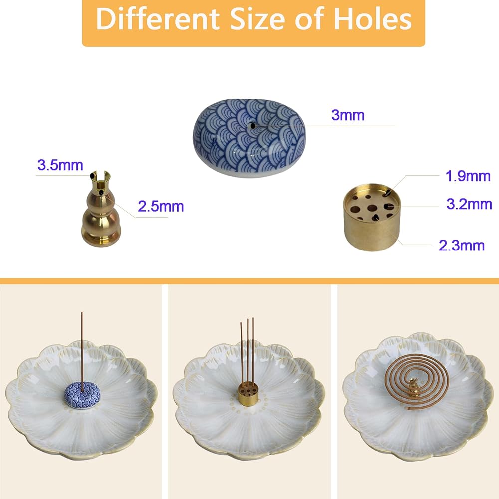 مناسبة لجميع أحجام البخور: تتوفر مواقف البخور الثلاثة بحجم 2-4 مم ، لتلبية مجموعة من البخور. يمكن أن يضمن أن تظل غالبية عصي البخور رأسية ولن تسقط رماد البخور على الطاولة بسبب الميل