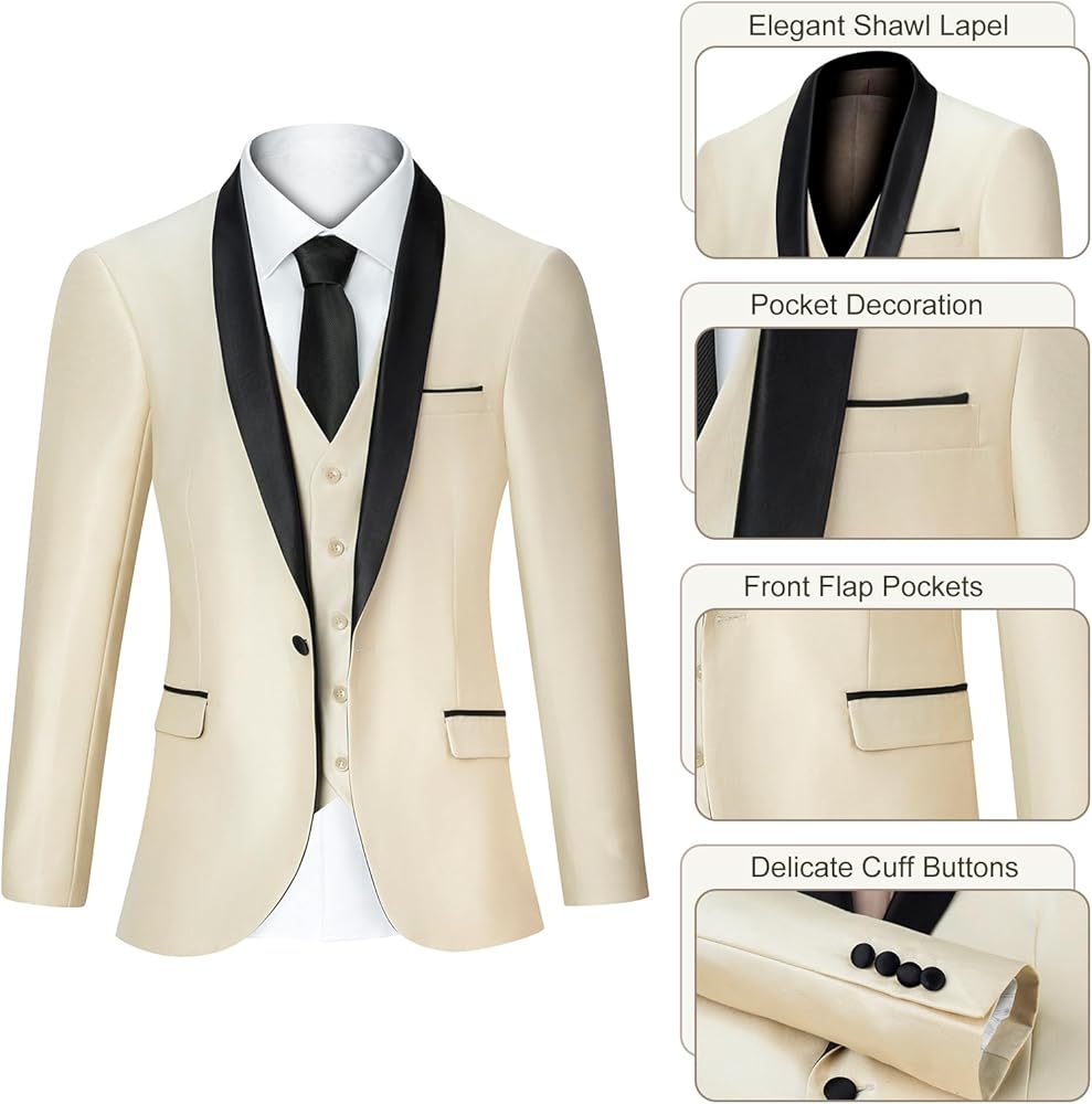 مجموعة ثلاث قطع متعددة الاستخدامات: تشمل بدلة هذه القطع من 3 قطع للرجال سترة ، وسروال ، وسترة أنيقة ، مما يتيح خيارات لا نهاية لها للخلط والمطابقة لتناسب أي مناسبة ، من حفلات الزفاف إلى الحفلات والحفلات الراقصة والأحداث التجارية.