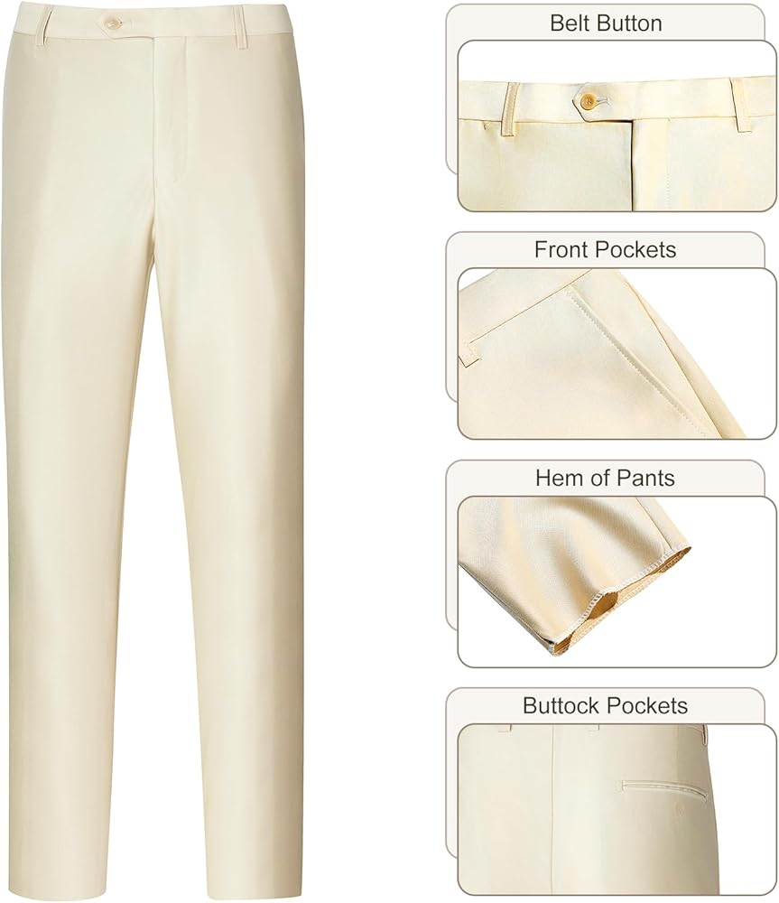 بدلة النمط الكلاسيكية: تتميز Blazer Slim Fit بإغلاق أحادي اللون ، طوق شال ، وجيب على الصدر مع تقليم أنيق ، وجيوب رفرف جانبية ، وجيوب داخلية لمزيد من الراحة. تحتوي سراويل مسطحة على ذبابة مضغوطة ، وإغلاق زر ، وجيوب مائلة أمامية جنبا إلى جنب مع اثنين من جيوب الأزرار الخلفية للوظائف.